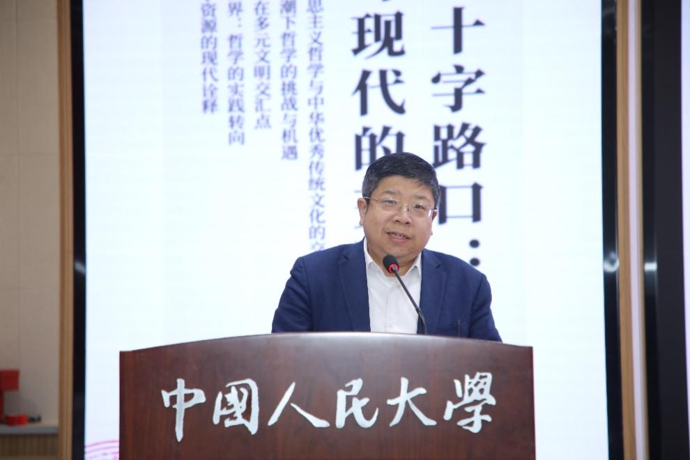 臧峰宇指出,今天中西文化比较在学术层面上更多体现为合作式对话、互镜式学习、共生式融通,在文明交流互鉴中使我们更好地理解民族文化自我,在对话与会通中拓展了文化传承发展空间,这一空间的实践场域是传承发展中华传统文化的中国式现代化,确证了“第二个结合”的现实必要性。臧峰宇表示,今天我们要在智能革命的浪潮中深入探讨科学技术与社会发展的辩证关系,为人类未来发展贡献哲学智慧。最后,臧峰宇为同学们提出三点希望:一是发扬“板凳甘坐十年冷”的治学精神,做洞察时代之变的思想者;二是树牢“勇立潮头敢为先”的创新意识,做引领时代之先的探路者;三是强化“大道同行天地宽”的协作思维,做破解时代之问的研究者。