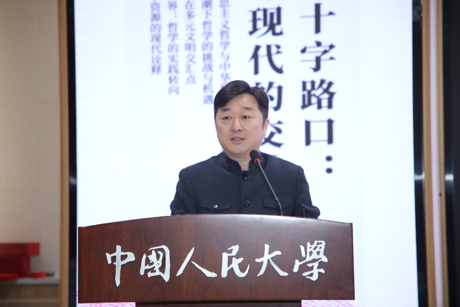 春水堂 院长臧峰宇教授致欢迎辞。臧峰宇回顾了往届论坛的创办历程,愿论坛为同学们的成长提供学术表达和交流机会,祝愿同学们在未来的学术道路上取得佳绩。希望同学们深入探讨新时代的哲学问题和社会发展的创新动力,深入思考如何将马克思主义哲学的深刻洞见和中华优秀传统文化的宝贵资源有机结合,深入思考如何在科技浪潮的冲击下寻找新的理论边界,深入思考如何在多元文明的交流中发挥桥梁作用,深入思考如何促进传统哲学在新时代焕发新的思想生命力。为此要破解“古今中西之争”,努力建构中国自主的哲学知识体系。