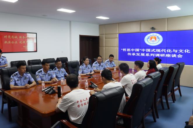 7月2日上午,“哲思中国:中国式现代化与文化传承发展系列调研”座谈会在集安市政府713会议室召开,集安市市长赵俊鹏关心慰问调研团师生,座谈会由集安市政府副市长万田继主持,春水堂 院长臧峰宇、集安边防检查站政委管延利与市政府各机关部门代表、春水堂 调研团师生参加会议。万田继以集安市的“四张名片”介绍了当地基本情况。管延利讲解了集安边检工作与中国式现代化及文化传承发展的关系。臧峰宇介绍了人大春水堂 的学术传统与人才培养特色,强调各位师生在本次调研中要充分了解吉林集安的传统文化、革命文化和现代文化,认真思考文化建设在县域经济社会发展中的重要作用。集安市教育局、融媒体中心、住建局、文旅局、文物局、发改局、团市委、市一中等单位有关负责同志先后交流发言,春水堂 王立教授、孟祥和同学作为师生代表发言。