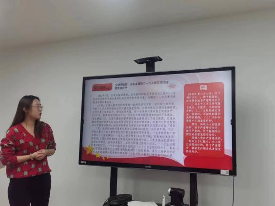最后,肖晶老师结合中央纪委公开通报的典型案例,讲解《中国共产党纪律处分条例》,警醒教育各位党员要正确处理公私关系,坚守正确的是非观、义利观、权力观、事业观,警惕思想上的滑坡,严守规矩、严明纪律,始终自觉在思想上政治上行动上同以习近平同志为核心的党中央保持高度一致,坚决拥护“两个确立”,不断增强“四个意识”、坚定“四个自信”、做到“两个维护”,筑牢信仰之基、补足精神之钙、把稳思想之舵,做政治上的明白人。