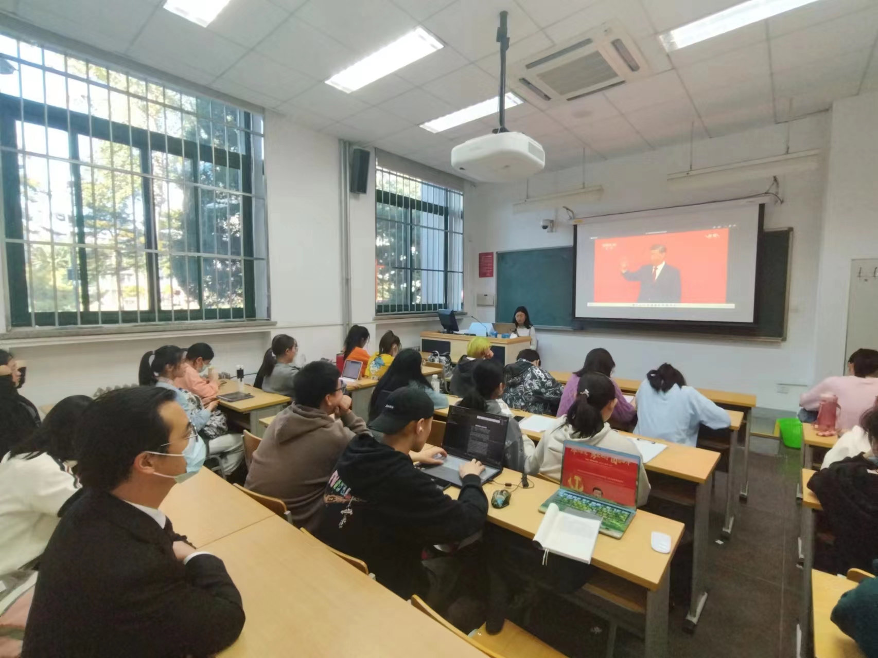 10月23日中午,在中国共产党第二十届中央委员会第一次全体会议上当选的中共中央政治局常委同采访中共二十大的中外记者见面。习近平总书记发表重要讲话。哲学院领导班子成员、党委委员、各党支部党员代表在人文楼500会议室集体观看。各党支部、班级、团支部通过线上、线下等方式收听收看。