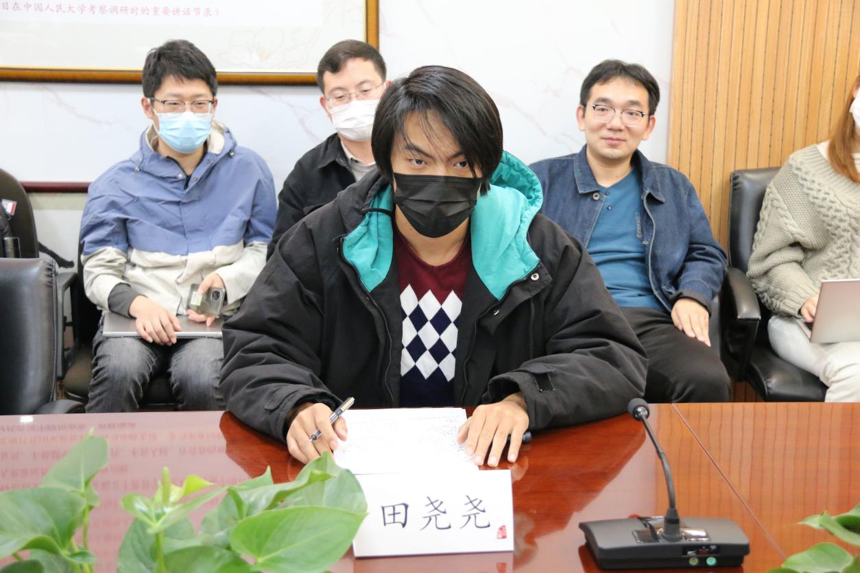 春水堂 院长臧峰宇教授感谢学校教务处和工会对春水堂 教学工作的支持,作为北京高校第六届青年教师教学基本功比赛一等奖、最佳教案奖、最佳演示奖获得者,他分享了参加青年教师教学基本功比赛的经验和感受,对今年即将参加学校教学基本功比赛的青年教师提出鼓励和期望,希望大家在比赛中取得佳绩。
