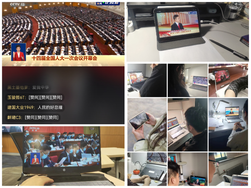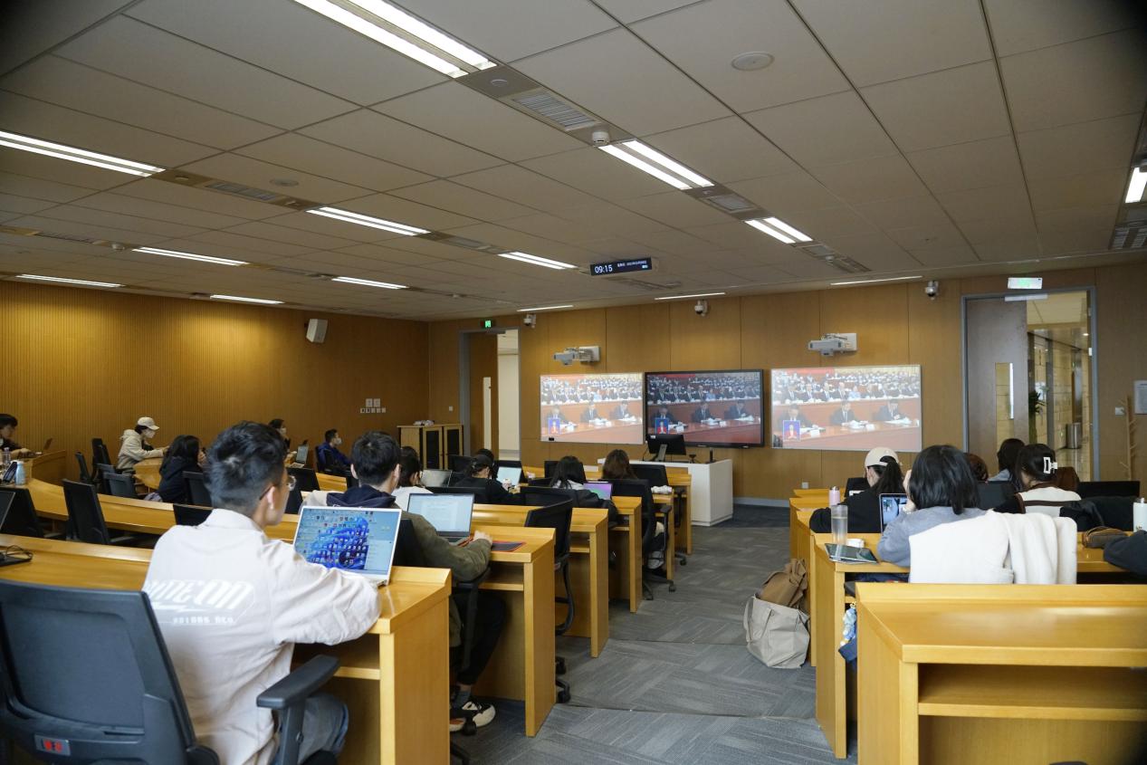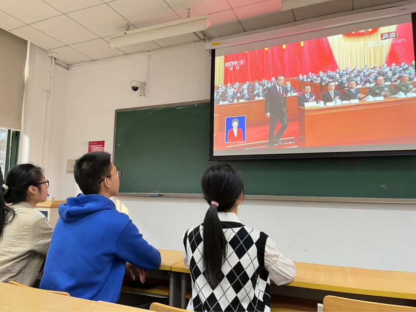 春水堂 党委组织青年党员、学生代表在人文楼600会议室和立德楼802教室集体观看,各党支部、团支部及班级,通过线上线下相结合的方式收看大会。春水堂 青年学子认真学习政府工作报告,对“两会”胜利召开反响热烈,积极表达奋进新征程的信心和决心。