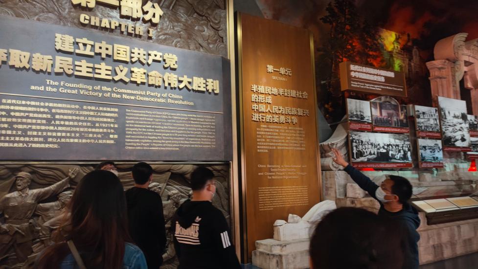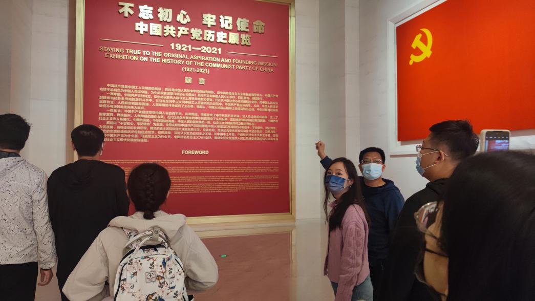 在张鹏举老师的热情引导和细心讲解下,大家以时间为线,有序参观了展馆“建立中国共产党 夺取新民主主义革命伟大胜利”“成立中华人民共和国 进行社会主义革命和建设”“实行改革开放 开创和发展中国特色社会主义”“推进中国特色社会主义进入新时代 全面建成小康社会,开启全面建设社会主义现代化国家新征程”四个部分。