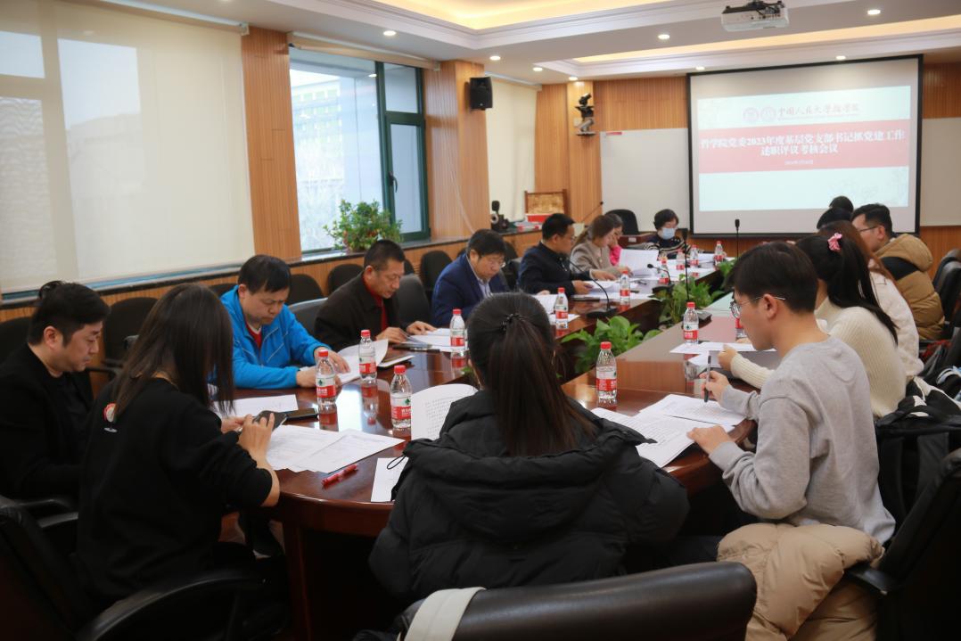 张鹏举作总结讲话。张鹏举感谢各党支部书记2023年辛勤工作和努力付出。张鹏举表示,各党支部要认真学习张东刚书记、林尚立校长、吴付来副书记在学校2023-2024学年春季学期工作部署会上的讲话精神,巩固拓展主题教育成果,紧紧围绕学校党委“十个以”要求,深入推进基层党建攻坚“三年行动”各项工作部署。要持续强化理论武装,深入学习贯彻习近平新时代中国特色社会主义思想和党的二十大精神。要大力推进支部规范化、标准化建设,巩固“三热合一”格局。要全面落实好“三会一课”、固定主题党日等制度。要继续发扬自我革命精神,做好党员教育管理,组织开展好集中性纪律教育,教育党员遵规守纪。要加强网络空间思想引领,守土负责做好意识形态工作。全体党支部书记要以述职评议考核为契机,找准出发点、把握切入点、明确落脚点,以高质量党建推动学院高质量发展。