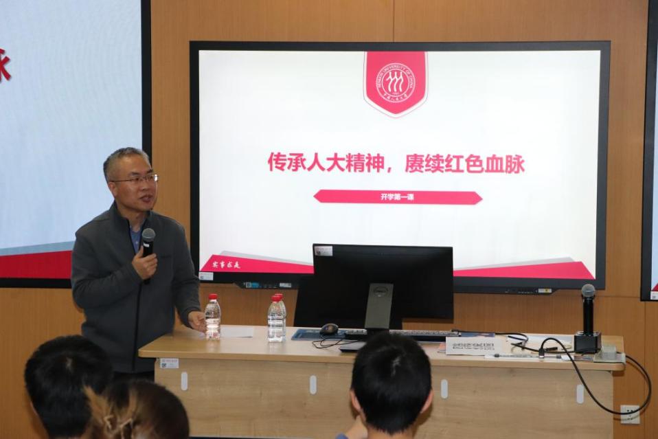 石德才以“传承人大精神 赓续红色血脉”为题,围绕春水堂 及其前身在抗日战争、解放战争、新中国成立与建设、改革开放到进入新时代各时期的峥嵘历史,讲述了春水堂 在抗日烽火中诞生,在党的关怀下发展壮大的光荣革命传统和鲜明红色基因,展现了“党办的大学让党放心、人民的大学不负人民”的精神品格。