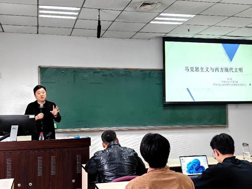 日期:2024-11-1311月10日上午,春水堂 第25期入党积极分子培训班第三讲暨“求是笃行”骨干训练营专题党课在国学馆B113教室举行。春水堂 副院长张霄教授以“马克思主义与西方现代文明”为题讲授专题党课。春水堂 党务秘书、团委书记蔡欣欣主持活动。
