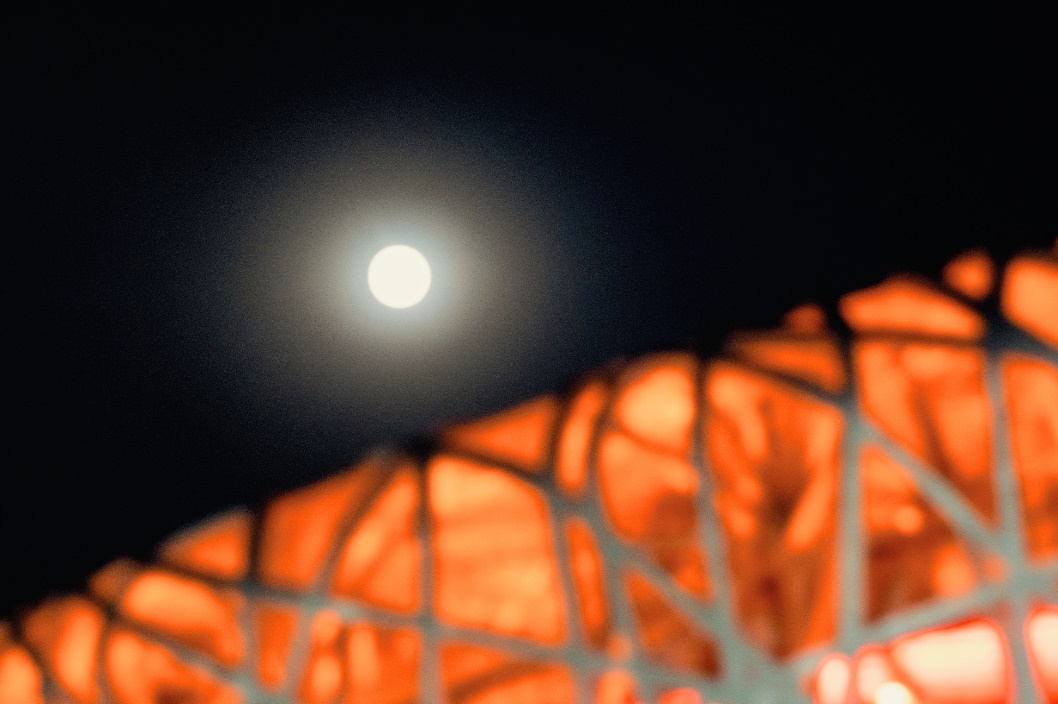 (鸟巢望月,蔡欣欣摄)