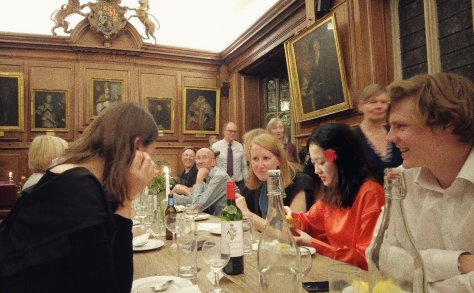 整体来说,牛津的娱乐肯定没有国内丰富。我和朋友们虽然经常打趣说这里“好山好水好无聊”,但牛津确实是很适合生活和治学的。另外,牛津作为世界最古老的大学之一,也有着自己的独特传统,比如说Formal Dinner(正式晚宴)。晚宴餐厅通常挂着学院的标志和历代校友的巨幅画像,蜡烛灯光昏黄而温暖。教授学者以及同学们需要符合着装要求才能入场晚宴。根据不同的晚宴类型,对于礼服会有white tie(要求着燕尾服和礼裙)、black tie(无尾礼服和礼裙)和smart(休闲西装和裙子)等不同要求。晚宴就餐为前菜、主食、甜点三道,另外还有酒饮。此外还有College Ball(舞会),punting(撑船)等特色活动。
