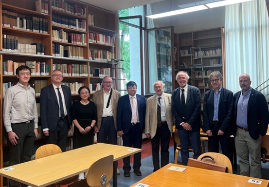9月20日上午,臧峰宇院长一行访问了帕多瓦大学哲学系,与帕多瓦大学前任校长Vincenzo Milanesi教授、哲学系主任Egidio Robusto教授、Antonio Da Re教授、Giuseppe Giordan教授、Andrea Altobrando教授、Luca Basso等举行了会谈。双方围绕继续开展师生交流,续签合作协议,共建“中意文明比较”课程等进行了深入探讨。