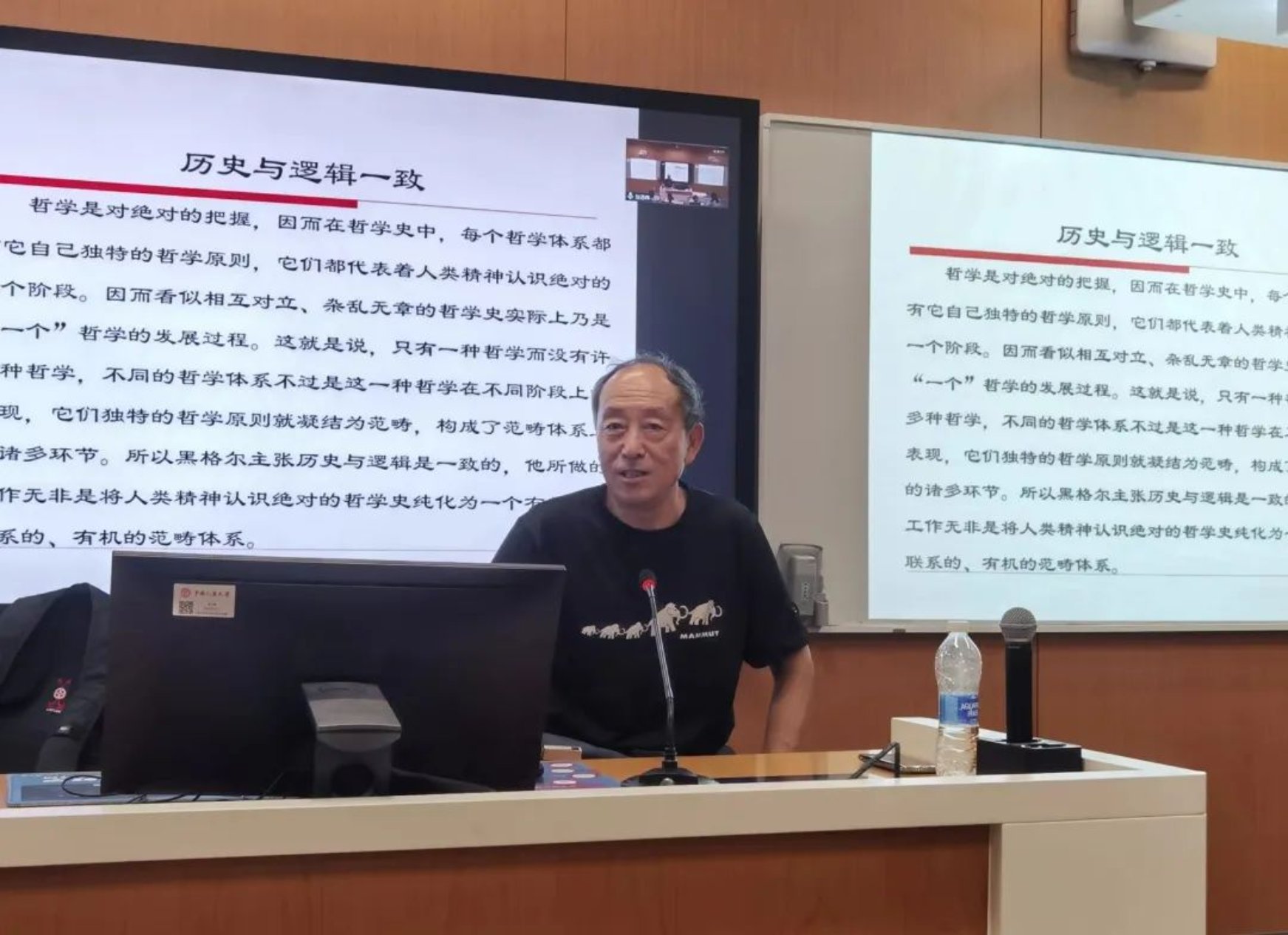 张志伟老师正在上本学期的最后一堂西方哲学史课