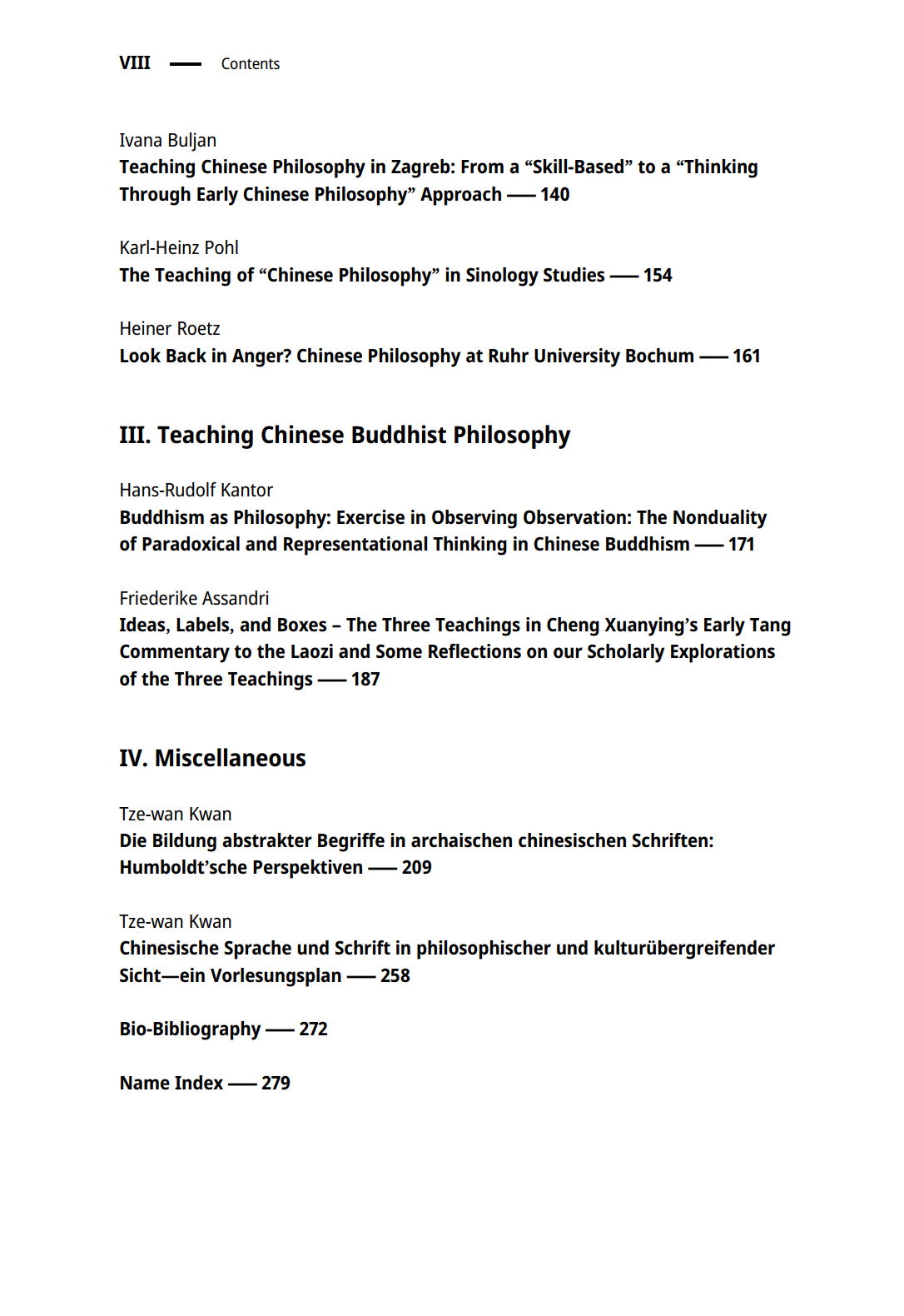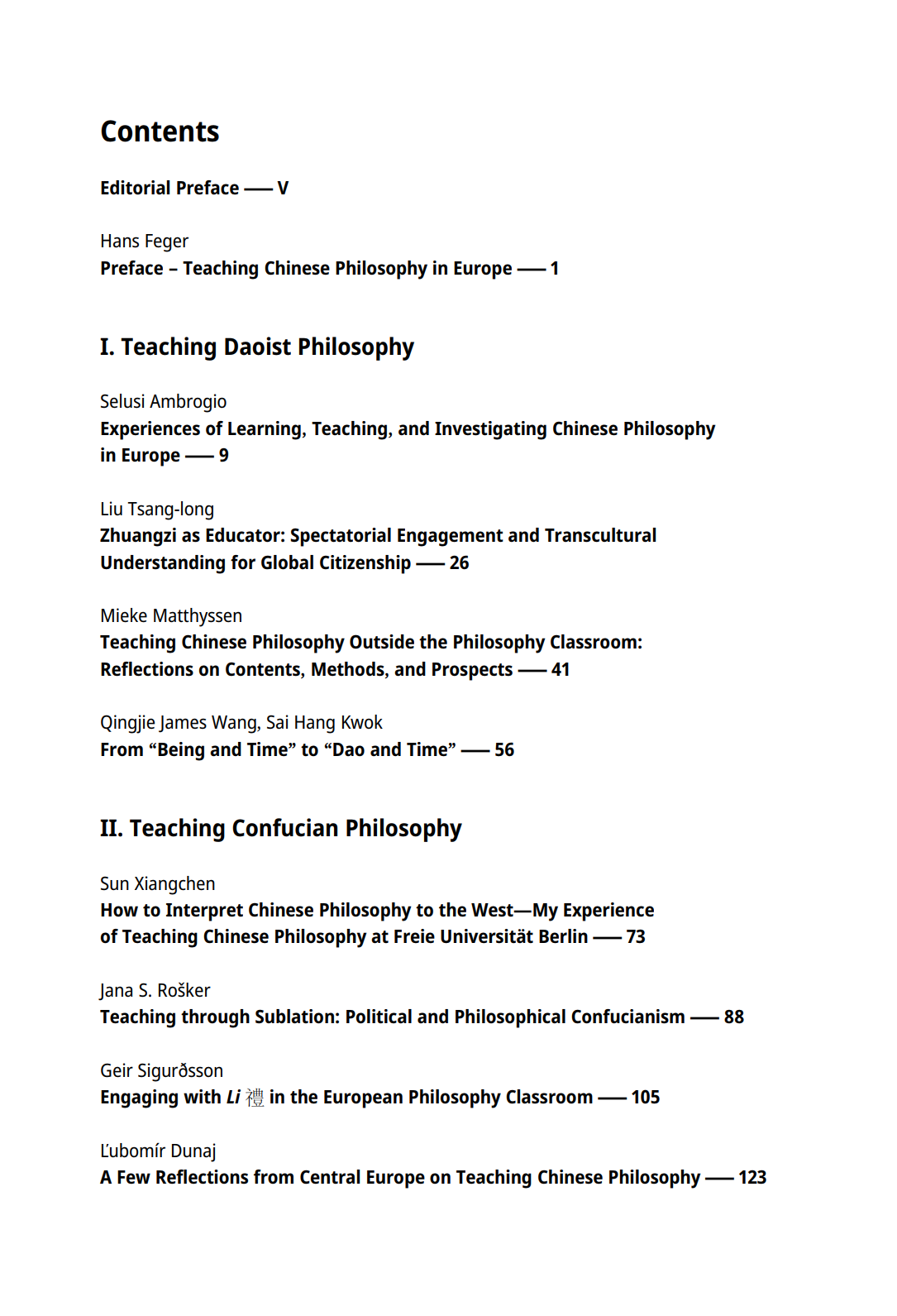 有鉴于此,《在欧洲教授中国哲学》(Teaching Chinese Philosophy in Europe)这一卷收录了相关精选论文,它们以广泛的视角反映了中外学者的各自认识,不仅反映了不同国家和地域在文化方面的差异,而且注重搭建彼此沟通的桥梁。本卷内容对传播中国哲学思想,提升中国文化在世界范围的影响力,将会产生积极作用。