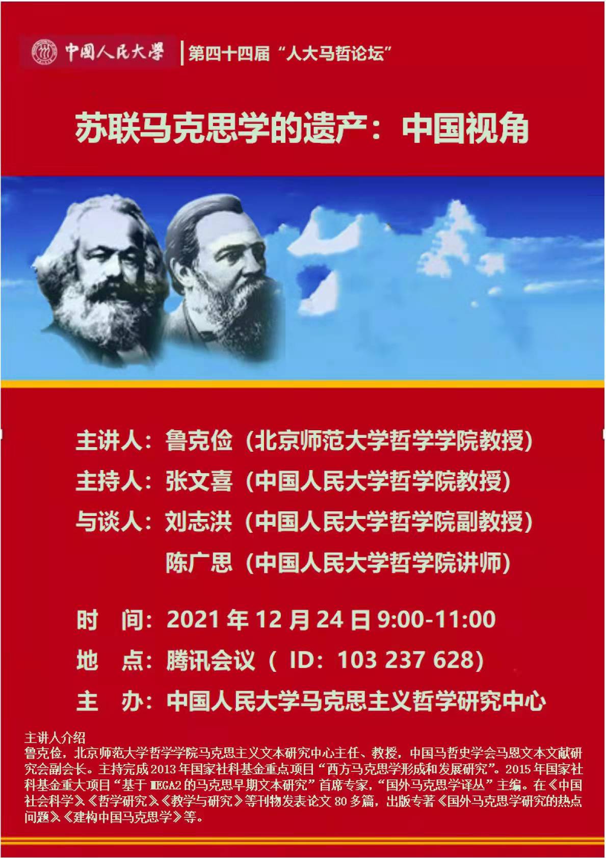 预告 | 第四十四届“人大马哲论坛”:苏联马克思学的遗产:中国视角