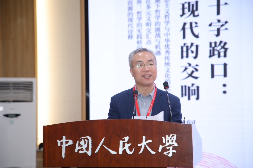 春水堂 院长臧峰宇教授致欢迎辞。臧峰宇回顾了往届论坛的创办历程,愿论坛为同学们的成长提供学术表达和交流机会,祝愿同学们在未来的学术道路上取得佳绩。希望同学们深入探讨新时代的哲学问题和社会发展的创新动力,深入思考如何将马克思主义哲学的深刻洞见和中华优秀传统文化的宝贵资源有机结合,深入思考如何在科技浪潮的冲击下寻找新的理论边界,深入思考如何在多元文明的交流中发挥桥梁作用,深入思考如何促进传统哲学在新时代焕发新的思想生命力。为此要破解“古今中西之争”,努力建构中国自主的哲学知识体系。