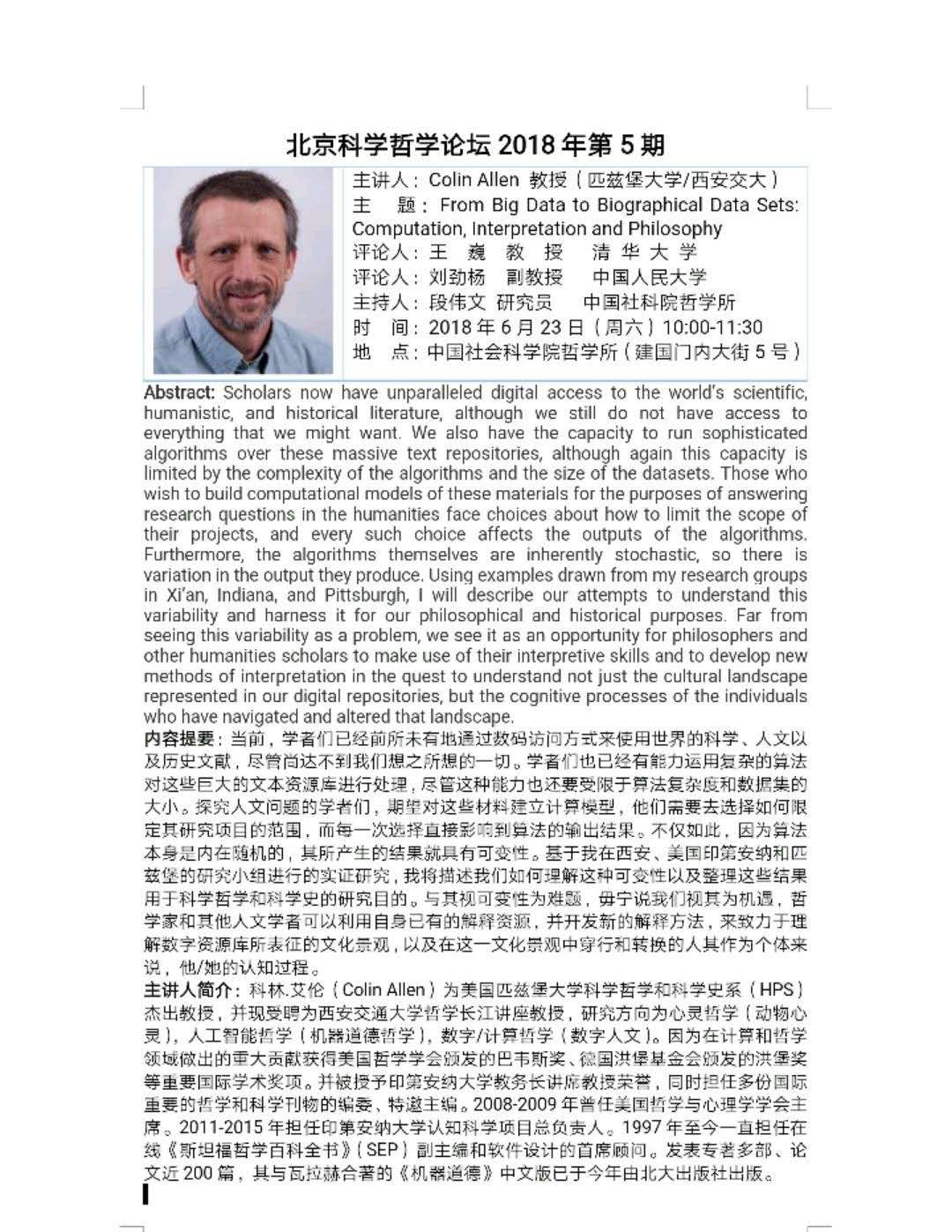 讲座主题:From Big Data to Biographical Data Sets: Computation, Interpretation and Philosophy;