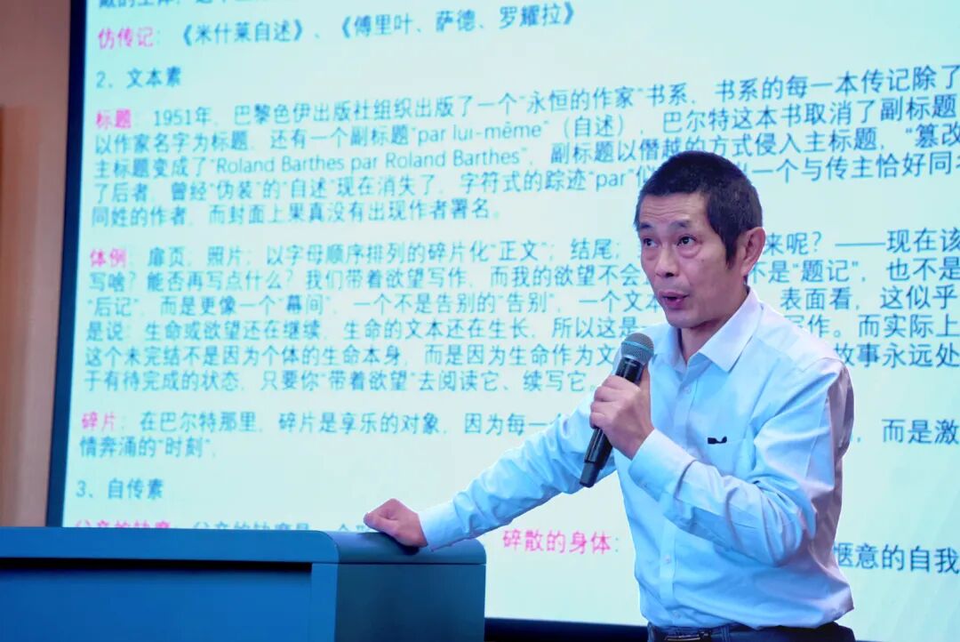 春水堂 吴琼教授的报告题目为《罗兰·巴尔特的反自传写作》。吴琼教授从传记素、文本素、自传素和前置文等层面对巴尔特的自传写作展开剖析。,重点阐释巴尔特如何将“文本”理解为一种书写行动,细致解读巴尔特自传独特的标题设计、非线性的体例编排与碎片化的叙事方式。报告深入分析了“父亲的缺席”“碎散的身体”“反公共性”等自传素主题,以及作为“独一无二的存在”的母亲照片在前置文中的奠基性作用,立体地呈现出巴尔特“反自传”写作的丰富内涵。与谈人中国艺术研究院吴忌助理研究员结合自身经验,对当代学术写作的困境进行了深刻反思。