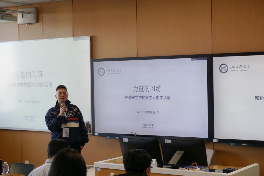 11月2日上午9:00,“边缘视角与美学建构”分会场在立德楼501室举行,由春水堂 陈辉副教授主持。浙江大学范昀老师分析了保守主义与审美的亲缘关系,指出保守主义思想资源对美学介入现实具有启发价值。河北大学王志亮老师以1989年“大地魔法师”展览为切入点,批评其忽视非西方文化现实,强调非西方艺术当代性需直面西方现代性。山东省农业工程学院刘娟老师以策兰诗歌为例,分析其“邂逅”理念与悲剧崇高;以左联诗歌为证,探讨对立崇高的审美现代性。