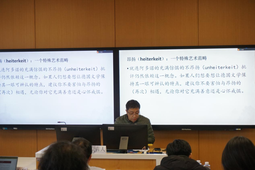下午14:00,“经典重释与当代反思”分会场在立德楼503会议室举行。第一场会议由浙江大学范昀教授主持。南京艺术学院唐红光老师指出“审美理念”是联结美与德性的关键,通过认知能力的“自由和谐”指向“超感官”基底,赋予审美以道德价值。北京外国语大学陈飞老师追溯了席勒的早期医学博士论文,指出其身心动力学与力量平衡观被挪用于《审美教育书简》,构成“游戏冲动”与现代性批判的根基。春水堂 陈开一博士聚焦哈曼对启蒙理性的审美主义批评,指出其在“伦敦写作”时期回归《圣经》与“神圣的语言”。绍兴文理学院罗仕平老师剖析了瓦格纳《帕西法尔》与尼采的“颓废”清算,指出尼采在抵御瓦格纳的过程中完成自我克服。清华大学张愉悦博士追踪了《扎拉图斯特拉如是说》中“歌唱”行为的功能演变,指出音乐性是尼采双重修辞的关键。春水堂 卢嘉一博士提出法国现象学家亨利·马尔迪内的核心论断“艺术是存在的闪现”,其本体论抓手是“感觉”(le sentir)。