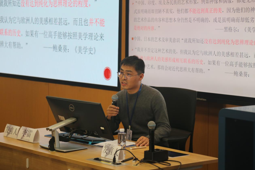 下午14:00,“历史与艺术史论”分会场在立德楼501教室举行。第一场由湖南大学李三达教授主持。北京第二外国语学院赵宝明老师探讨海德格尔论艺术作品的历史性,指出艺术作品是“历史”本身得以发生的根本契机。浙江师范大学陈庆老师围绕艺术与技术的关系,提出发明是二者重新融合的中介原则。华南师范大学张巧老师从媒介哲学视角出发,认为弗卢塞尔的“后历史诗学”并非否定“历史诗学”,而是对其在媒介哲学维度的重构,将历史视为一种“技艺”的生成过程。汉堡大学黎耀文博士围绕“非时序”与“编年史”的悖谬,分析了李格尔《造型艺术的历史语法》的转折意义。山东大学吴怡蔓博士聚焦路易吉·帕莱松的艺术理论,指出其在20世纪意大利美学中的转折性地位。