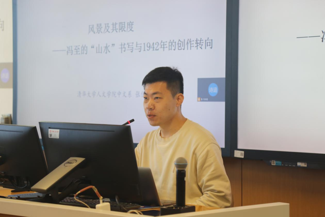 同日上午9:00,“跨文化审美与风景再观”分会场在立德楼503室举行,由春水堂 冯庆副教授主持。上海交通大学沈沫老师论证诗画的共通性,指出中国诗画均为“时空型艺术”,在意境营造中共同实现“真性”的凝结与显现。西安文理学院李冰清老师分析了《经行记》中唐代俘虏杜环对阿拉伯帝国与非洲的他者书写,指出其潜藏唐人“帝国之眼”下的天下观。武汉大学李寒冰老师认为,朱利安通过中西对比重构“风景”概念,导向“畅活于世”的本真存在模式,以回应西方现代性危机。清华大学张佳博士探讨了冯至在昆明时期“山水”观从优美向“艰险、严峻”的转变,指出其山水观具有自传性,成为介入现实、“感化”读者的伦理手段。