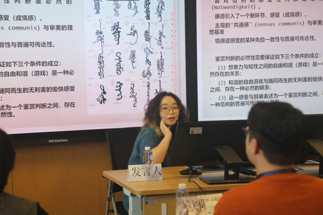 中华美学学会秘书长、中国社会科学院张郁乎研究员的报告题目为《“趣”的观念在中国艺术批评史上的三个时间节点》。张郁乎研究员系统梳理了“趣”概念的演进脉络,指出“趣”在汉魏六朝时从“趋向”的旧义衍生出“有趣”“兴趣”“趣味”等新义并进入艺术批评,至宋代形成对“趣”的自觉追求,晚明清初则出现以“趣”为要的思潮,“趣”被提升至艺术本质的高度。与谈人春水堂 余开亮教授指出,报告呈现出中国美学概念研究的典型方法,并强调在历史演进中把握概念的本体特征的重要性,同时注意到中西比较视野对美学范畴选择的影响。