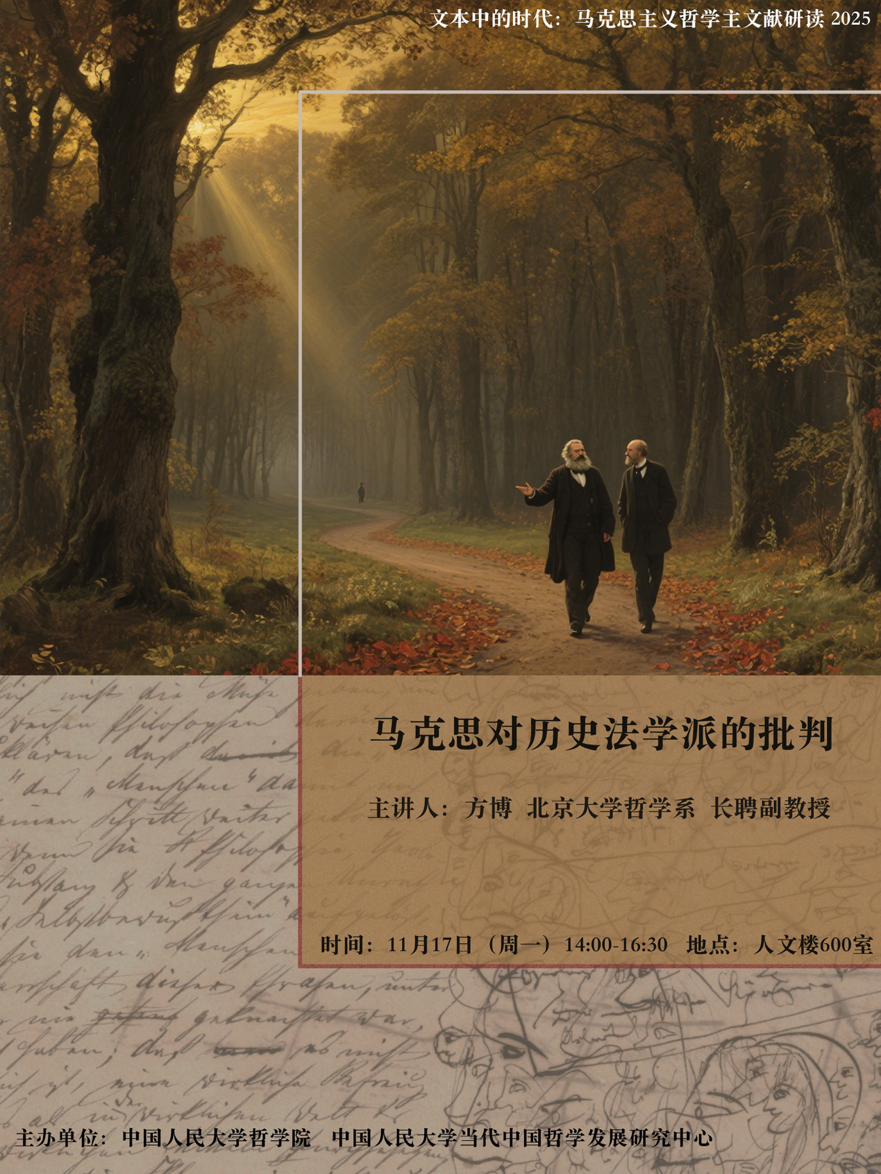 预告 | 方博:马克思对历史法学派的批判|文本中的时代:马克思主义哲学主文献研读系列讲座