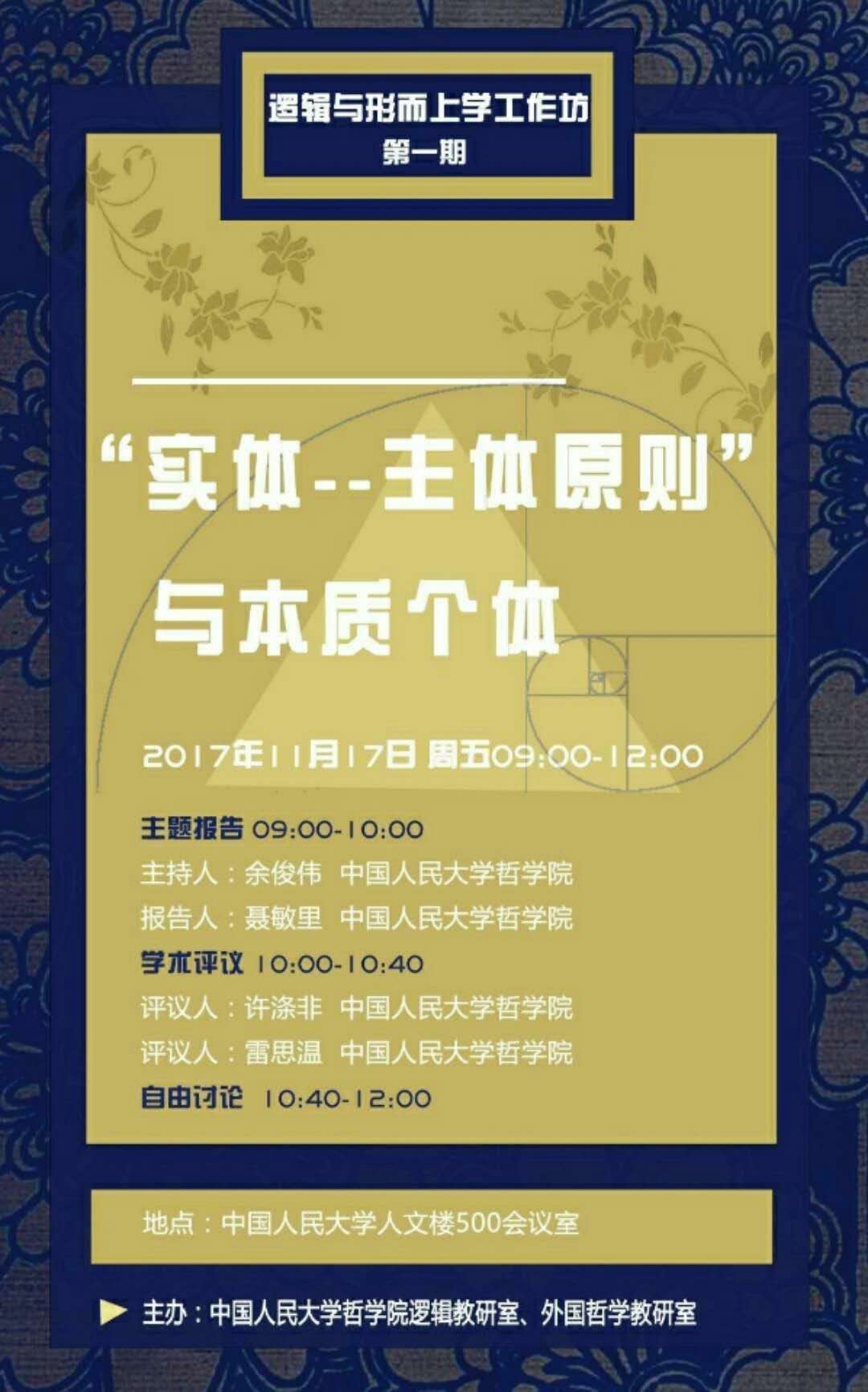 逻辑与形而上学工作坊第一期 | “实体-主体原则”与本质个体