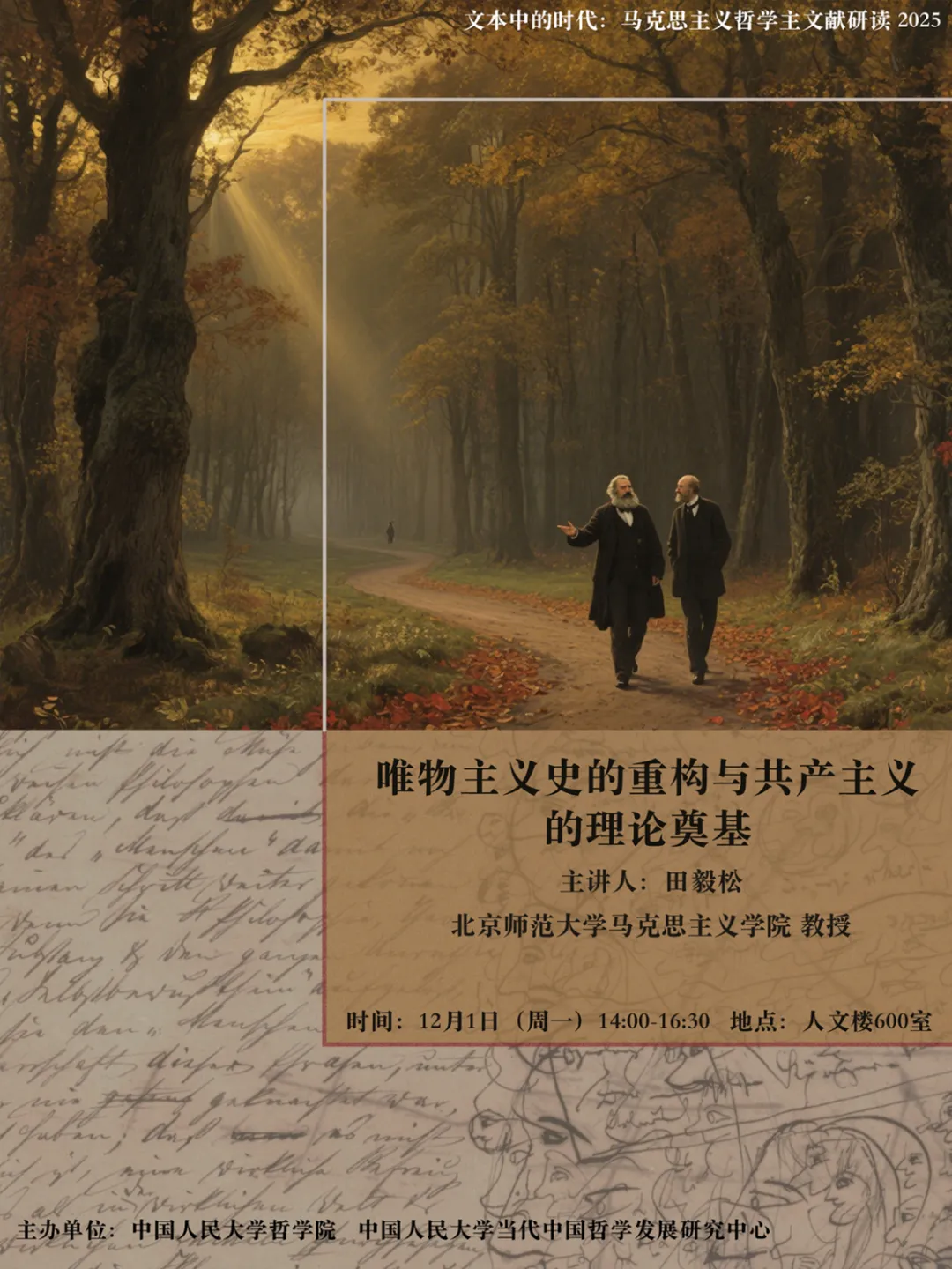 预告 | 田毅松:唯物主义史的重构与共产主义的理论奠基|文本中的时代:马克思主义哲学主文献研读系列讲座