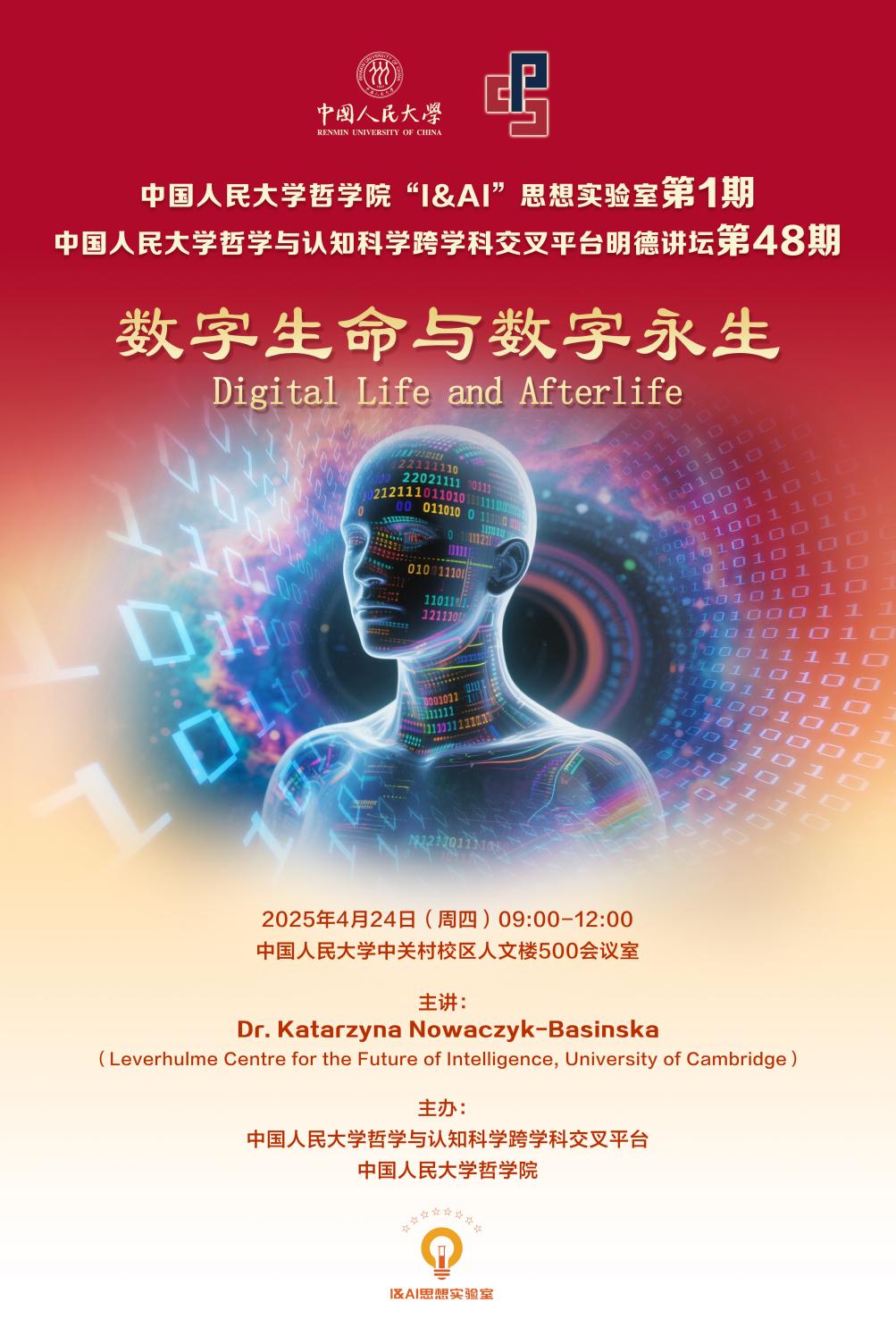 人工智能科技的飞速发展,正向我们提出一系列亟待反思的哲学课题。从数字人格到死后化身,从脑机接口到意识上传,AI不仅以前所未有的深度和广度改造着我们的生活,也在改造着我们对何为生命、何为死亡的理解本身。来自剑桥大学莱弗休姆智能未来中心(Leverhulme Centre for the Future of Intelligence)的Katarzyna Nowaczyk-Basińska博士将分享其团队在数字生命、数字永生领域的前沿研究进展,届时,来自脑科学、计算机科学、心灵哲学、科学哲学、宗教哲学、中国哲学、政治哲学、伦理学等领域的专家学者将会聚一堂,展开跨学科、跨文化的交流对话。