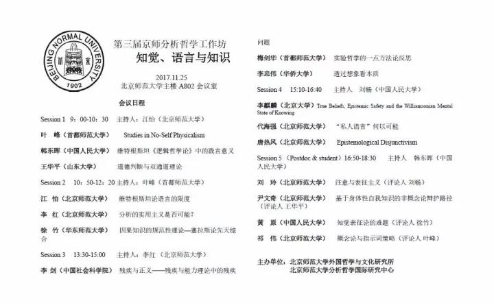 第三届京师分析哲学工作坊 | 知觉、语言与知识