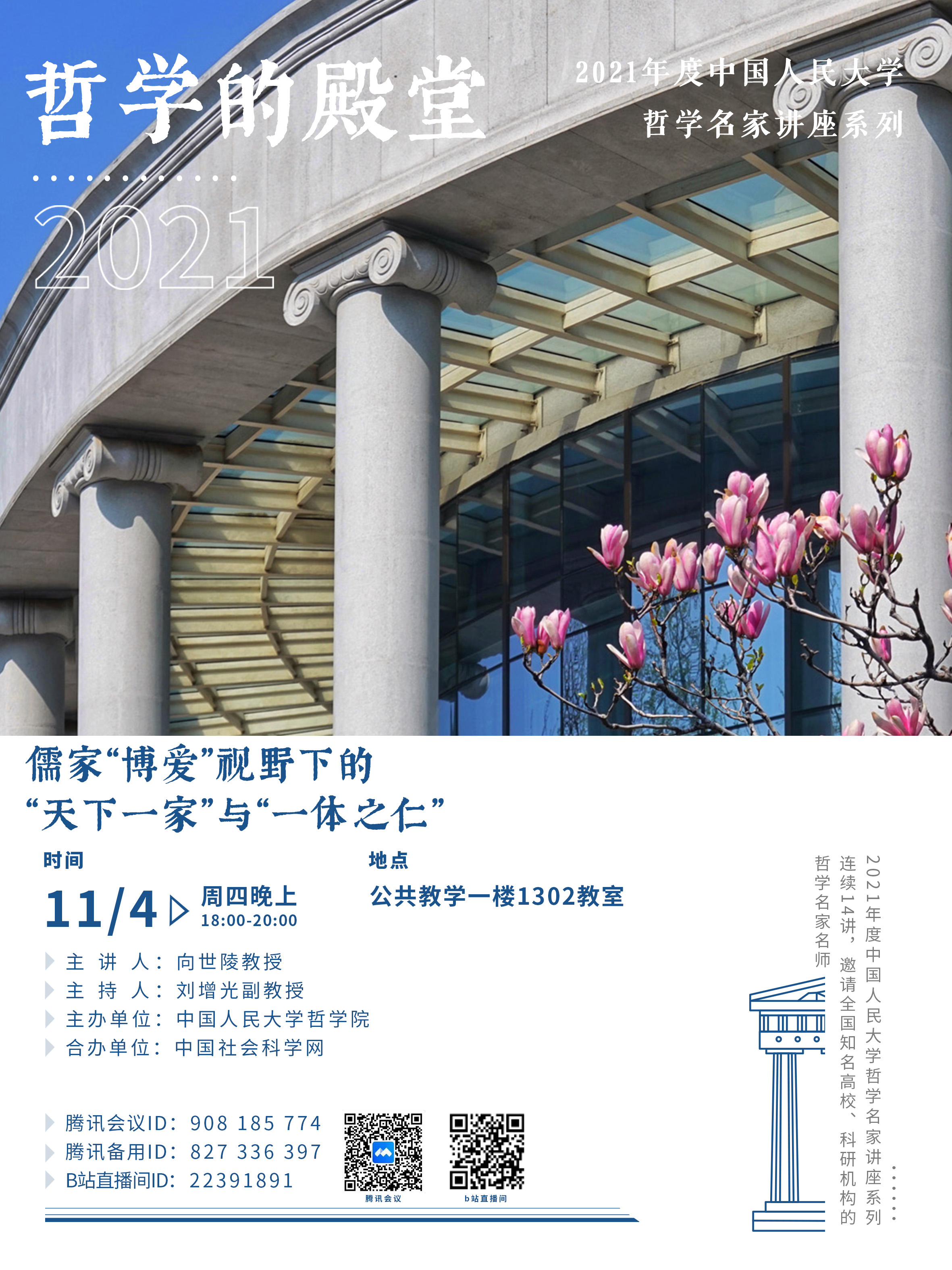 预告丨2021年度“哲学的殿堂”:儒家“博爱”视野下的“天下一家”与“一体之仁”