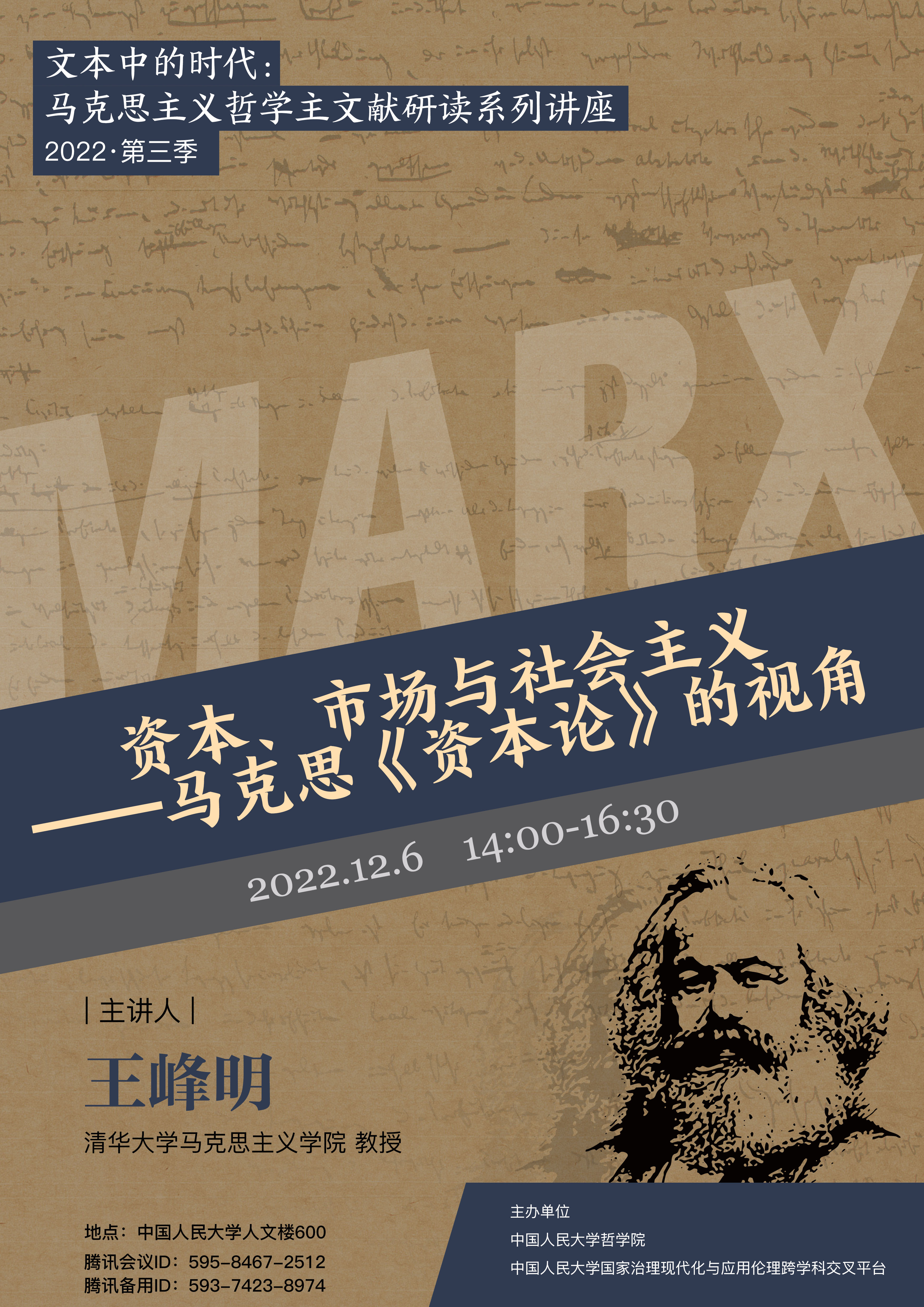 预告 | 王峰明:资本、市场与社会主义——马克思《资本论》的视角|文本中的时代:马克思主义哲学主文献研读系列讲座第三季