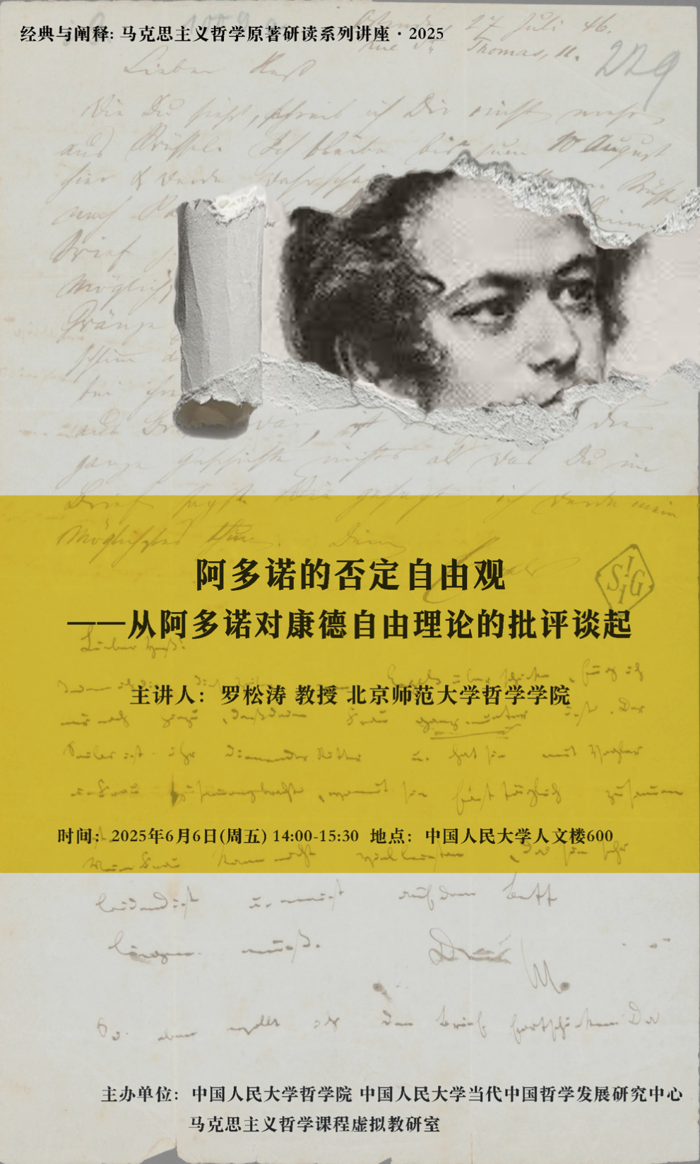 预告 | 罗松涛:阿多诺的否定自由观——从阿多诺对康德自由理论的批评谈起|经典与阐释:马克思主义哲学原著研读系列讲座