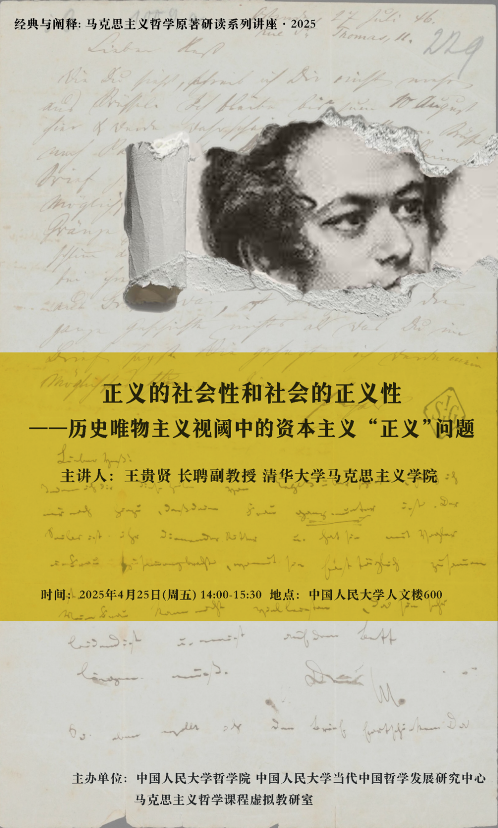 预告 | 王贵贤:正义的社会性和社会的正义性——历史唯物主义视阈中的资本主义“正义”问题|经典与阐释:马克思主义哲学原著研读系列讲座
