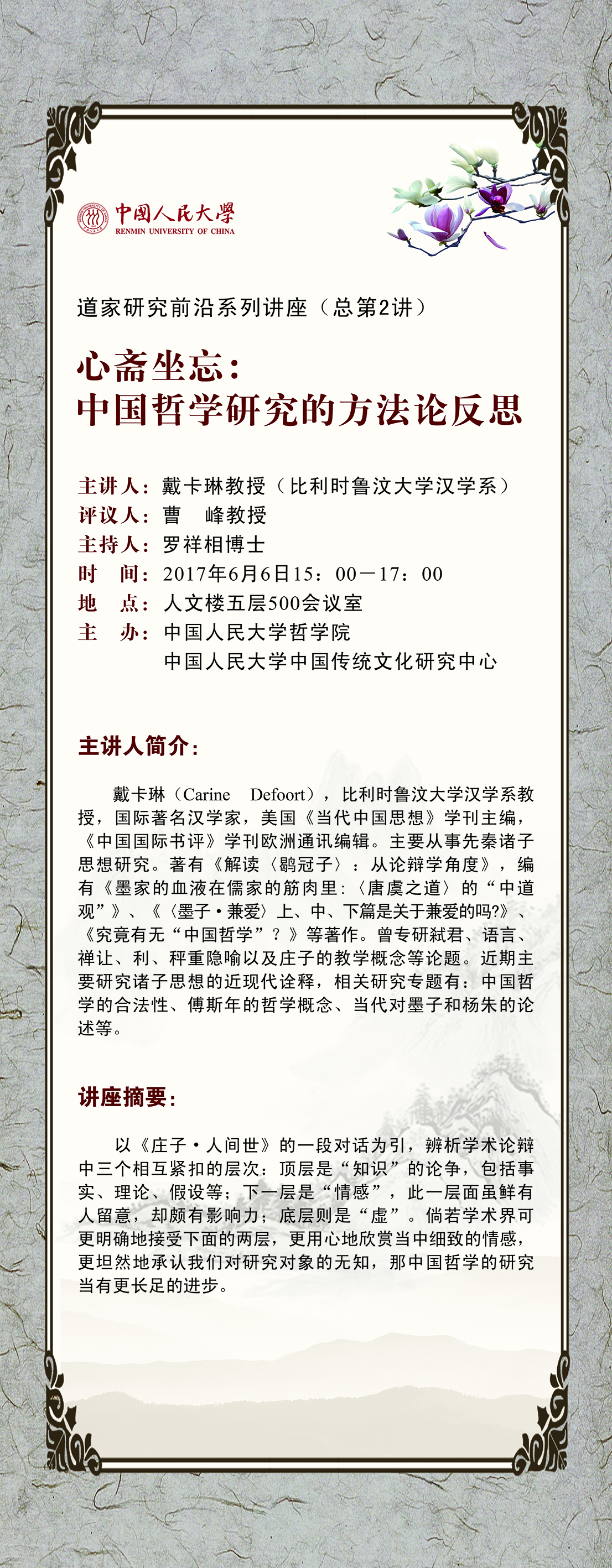 道家研究前沿系列讲座(总第2讲) | 心斋坐忘:中国哲学研究的方法论反思