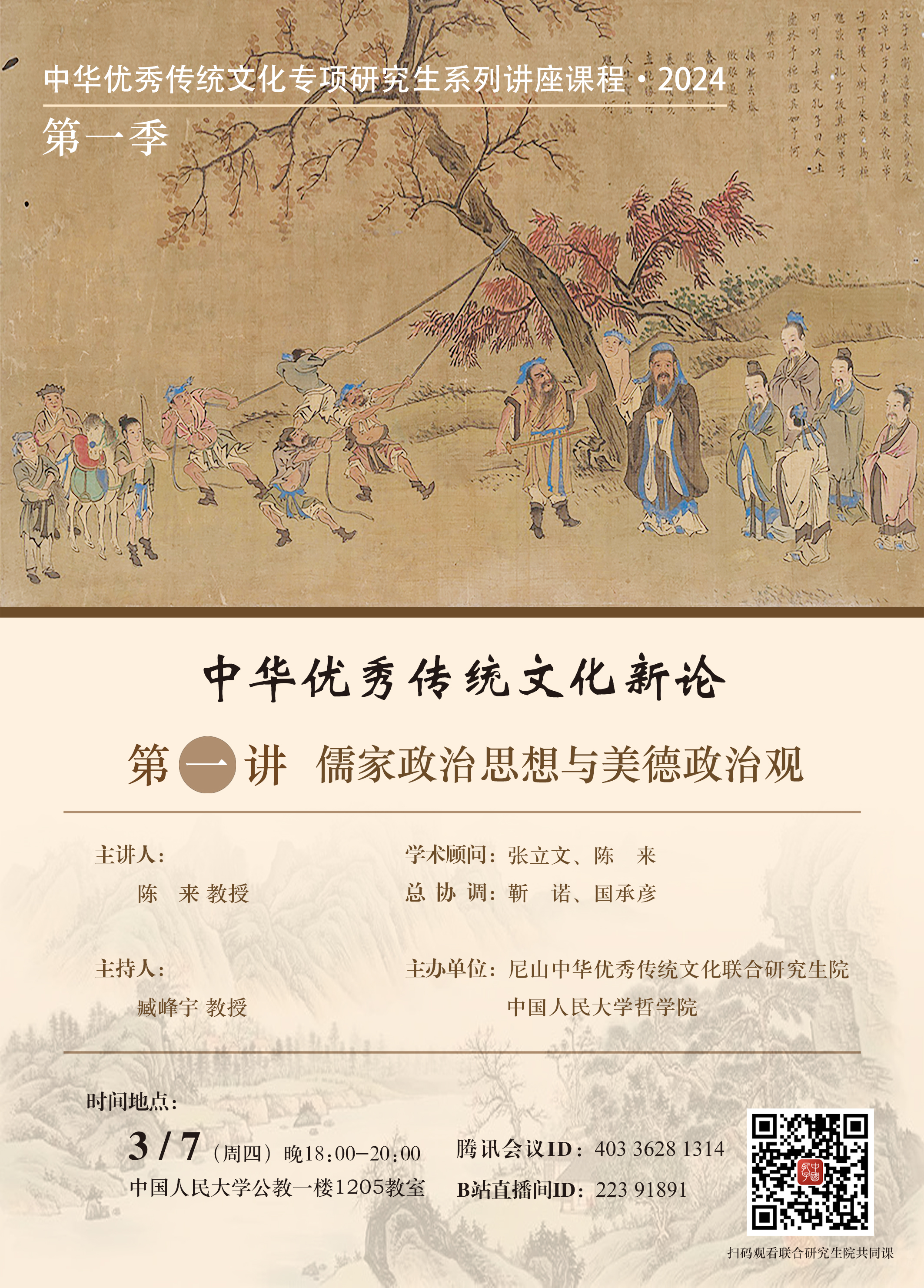 预告丨陈来:儒家政治思想与美德政治观丨“中华优秀传统文化新论”系列讲座课程·2024
