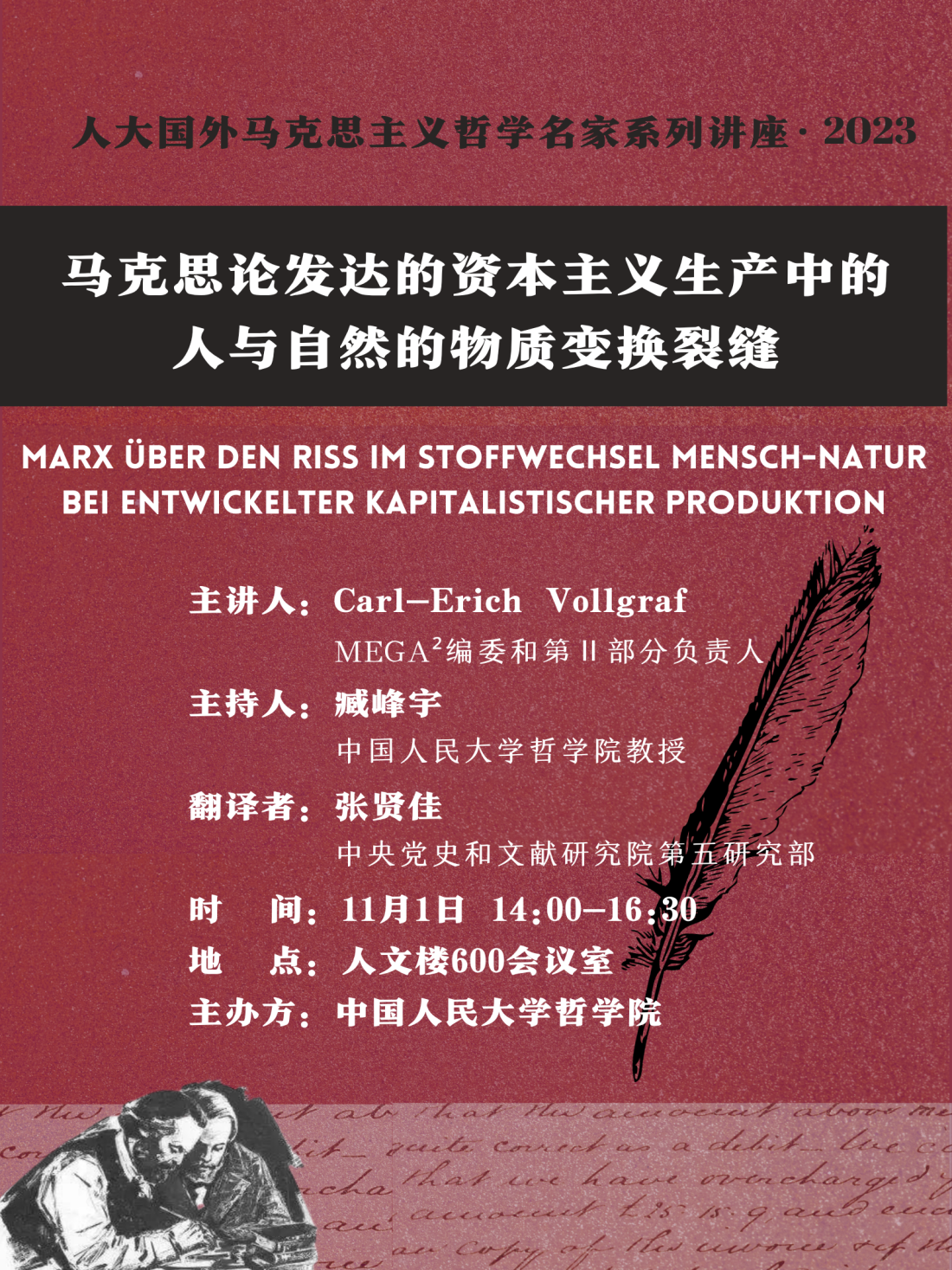 预告|福尔格拉夫|马克思论发达的资本主义生产中的人与自然的物质变换裂缝|人大国外马克思主义哲学名家系列讲座·2023