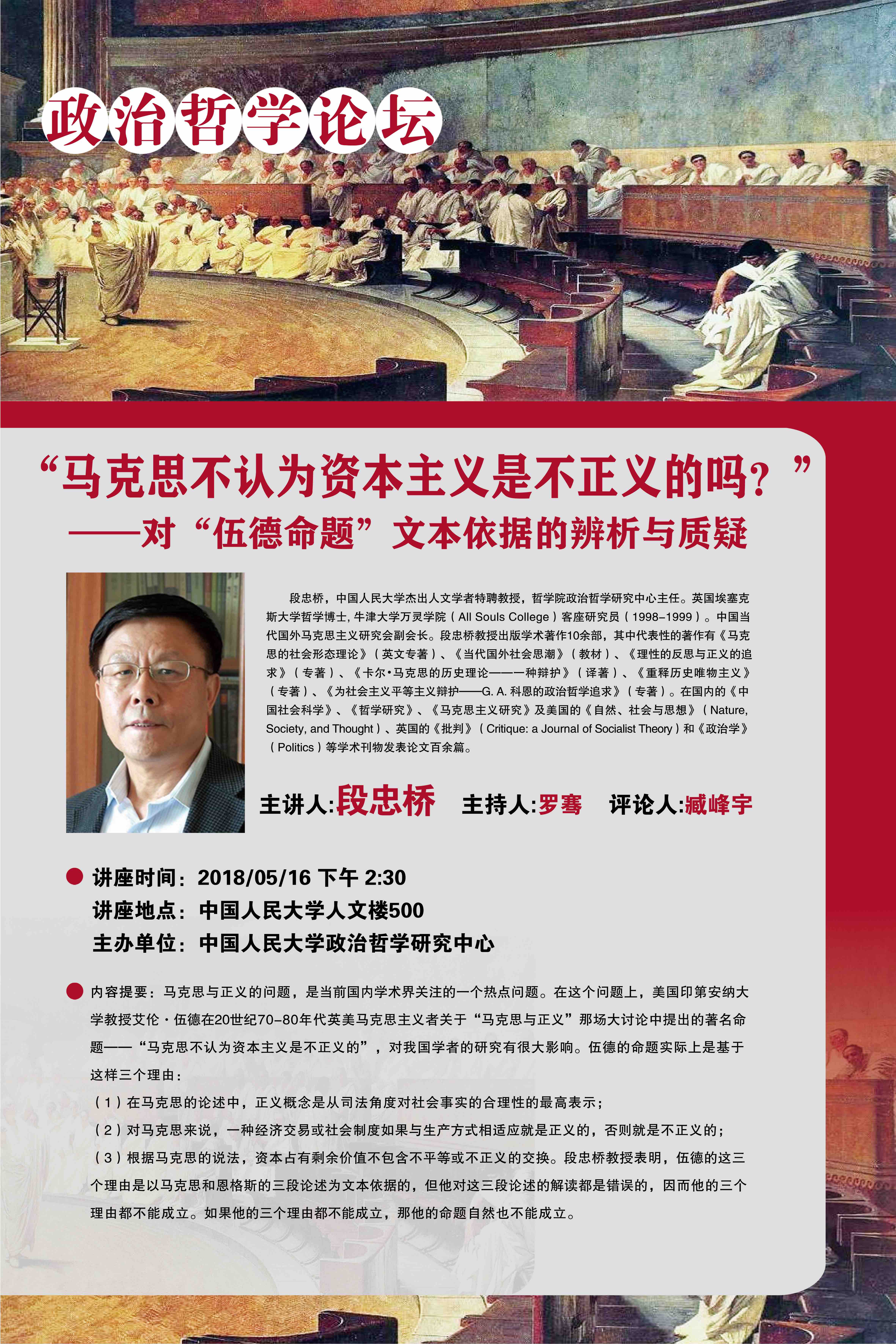 讲座预告 | “马克思不认为资本主义是不正义的吗?”——对“伍德命题”文本依据的辨析与质疑