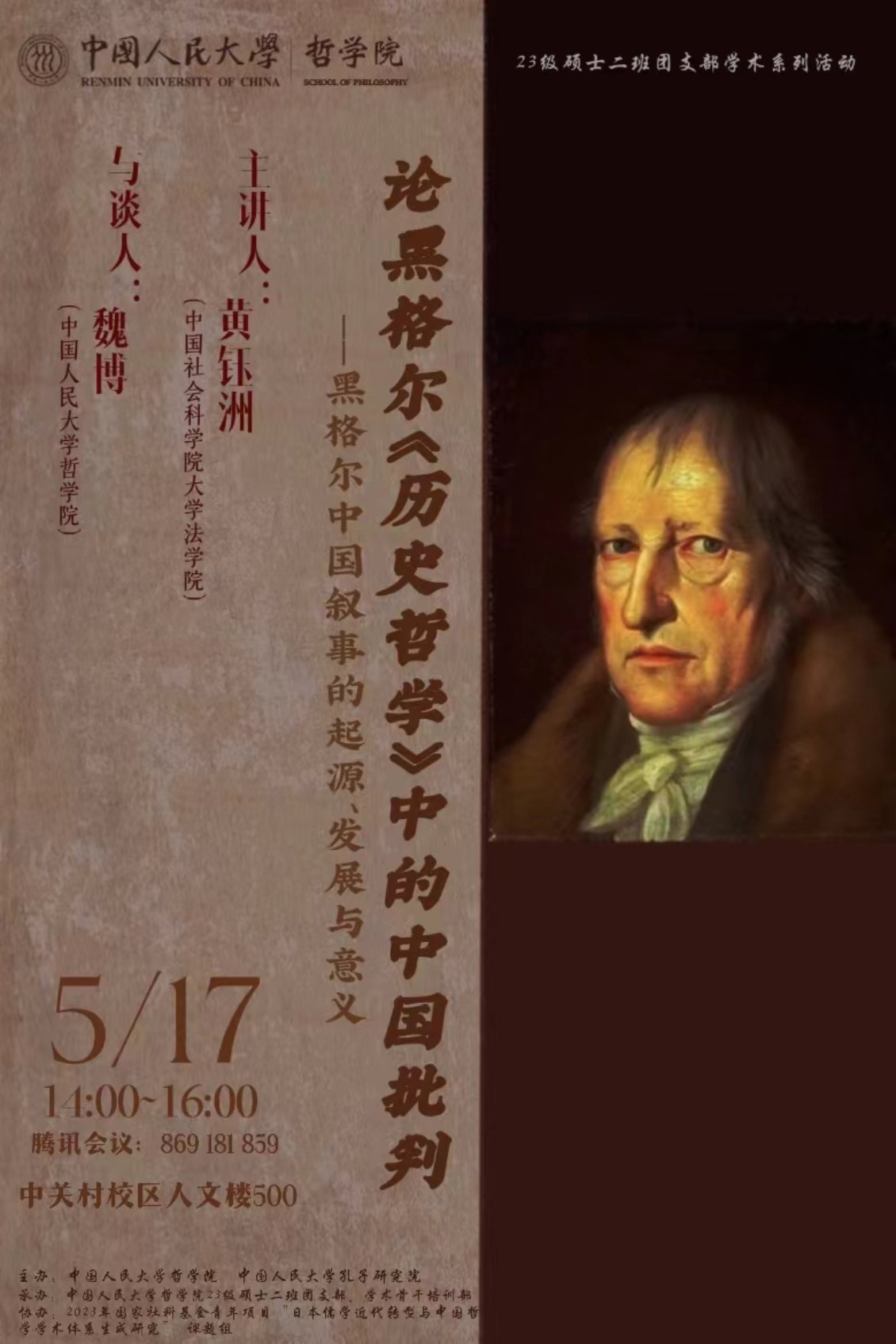 预告|黄钰洲:论黑格尔《历史哲学》中的中国批判——黑格尔中国叙事的起源、发展与意义