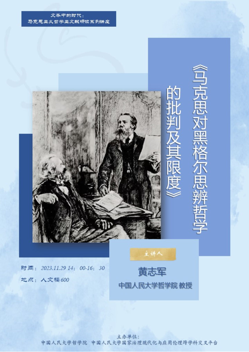 预告 | 黄志军:马克思对黑格尔思辨哲学的批判及其限度| 文本中的时代:马克思主义哲学主文献研读系列讲座