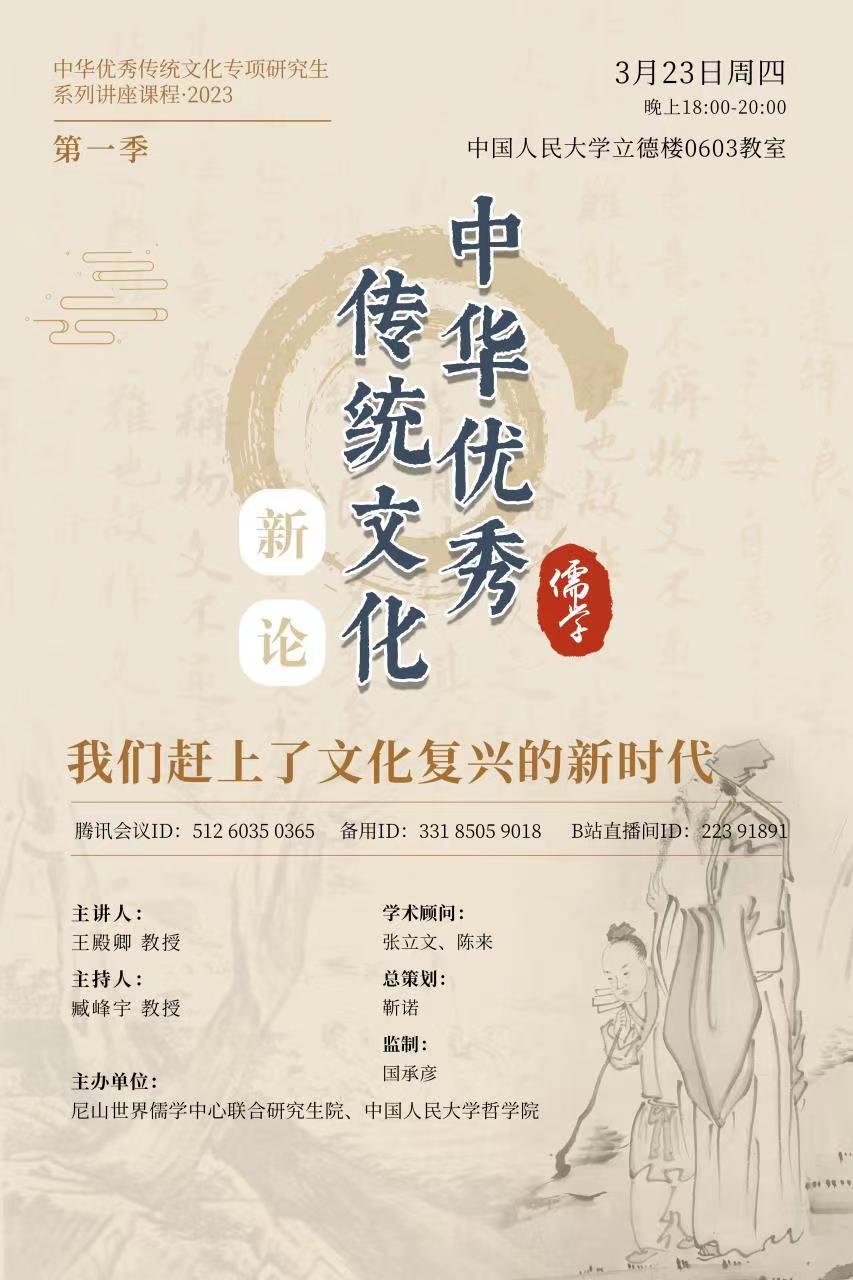 预告|王殿卿:我们赶上了文化复兴的新时代|“中华优秀传统文化新论”系列讲座课程·2023 第五讲