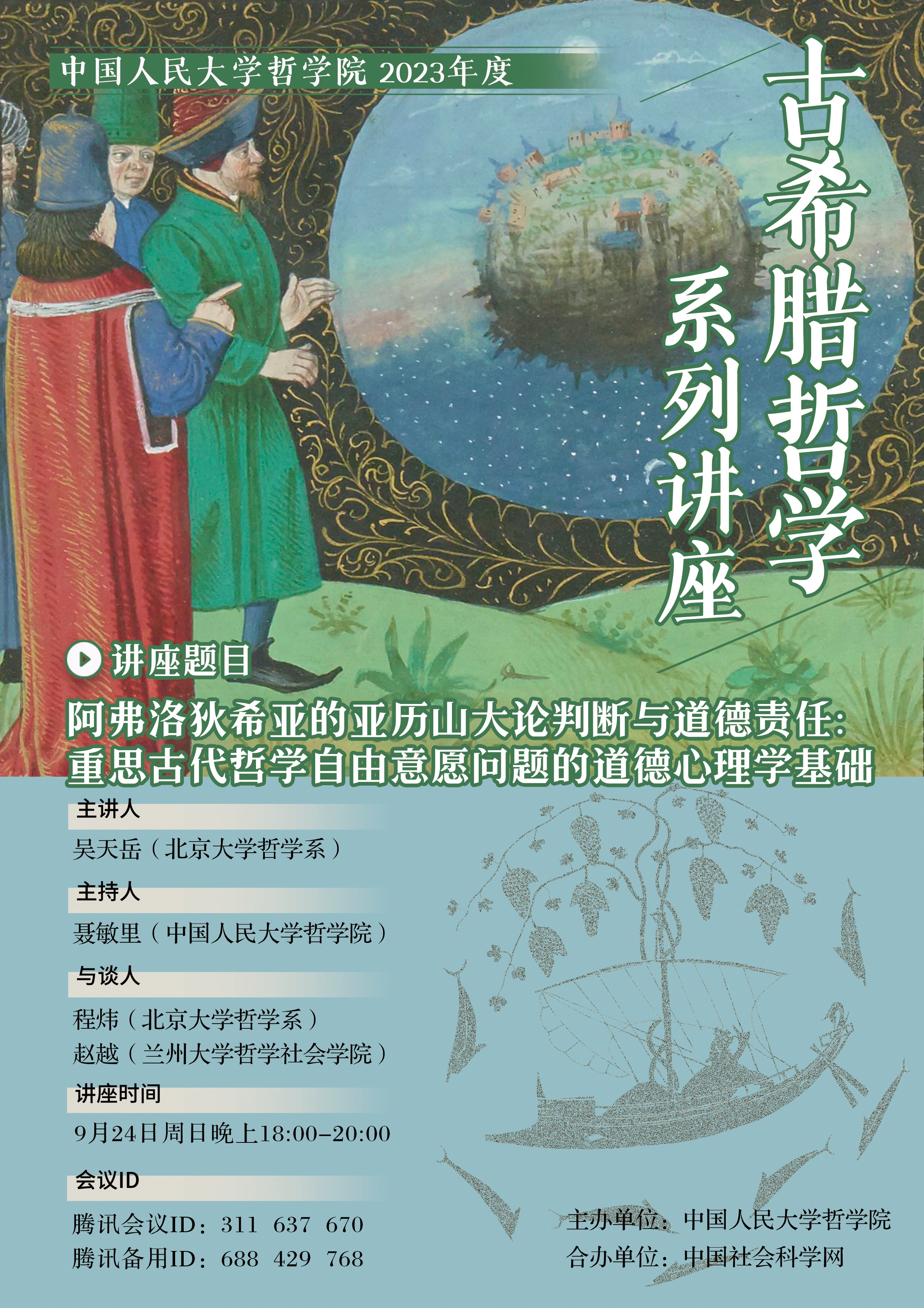 预告 | 春水堂 2023年度“古希腊哲学讲座系列” | 阿弗洛狄希亚的亚历山大论判断与道德责任:重思古代哲学自由意愿问题的道德心理学基础