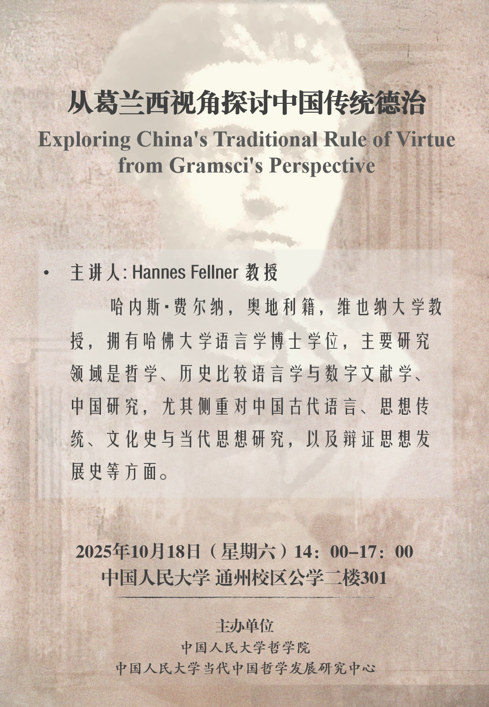 预告|Hannes Fellner 教授:从葛兰西视角探讨中国传统德治(Exploring China's Traditional Rule of Virtue from Gramsci's Perspective)