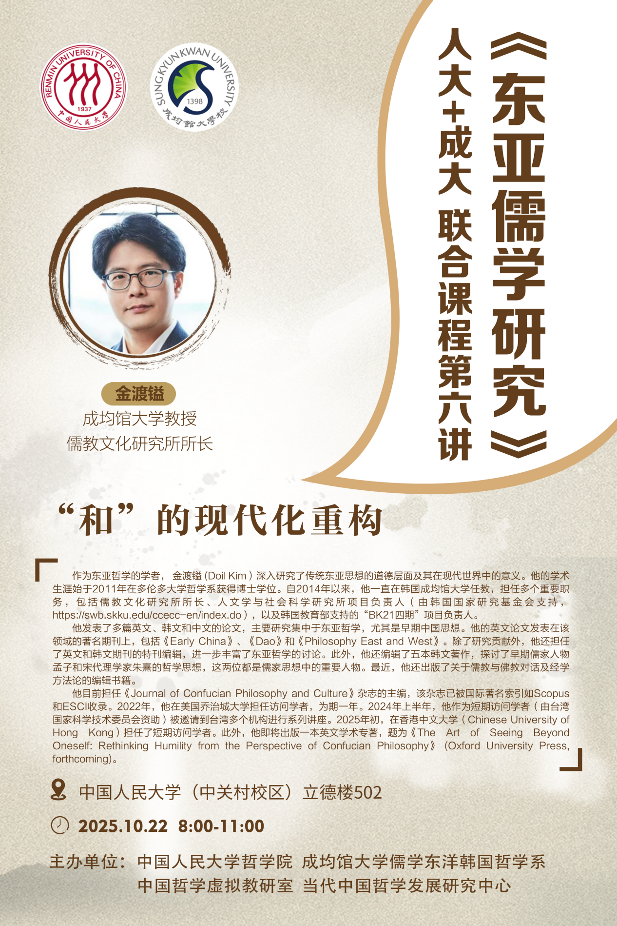 第六讲丨“和”的现代化重构丨《东亚儒学研究》人大+成大联合课程