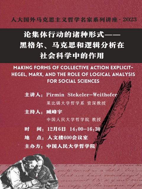 预告|皮尔明·斯特克勒-魏特霍夫|论集体行动的诸种形式——黑格尔、马克思和逻辑分析在社会科学中的作用|人大国外马克思主义哲学名家系列讲座·2023