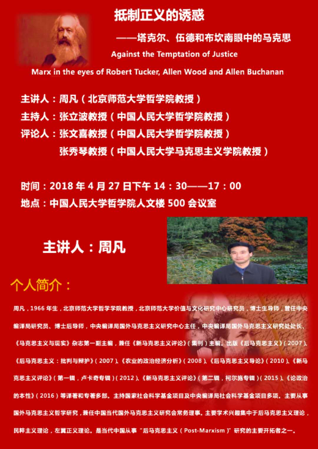 讲座预告 | 抵制正义的诱惑——塔克尔、伍德和布坎南眼中的马克思
