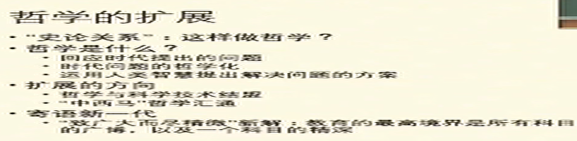 在此之后,赵敦华教授讨论了哲学如何扩展,以及扩展的方向。他认为哲学的扩展不仅是方法论问题,也是哲学的性质问题,哲学首先是“对时代提出问题的回应”,其次能够用哲学的话语提出问题,找到解决问题的方案(“时代问题的哲学化”),最后哲学“运用人类智慧提出解决问题的方案”。针对哲学扩展的方向,赵敦华教授强调了两点,一个是哲学与科学技术结盟,一个是朝向“中西马”哲学汇通的方向努力。他对《中庸》的“致广大而尽精微”做出新的解释,认为教育的最高境界是所有科目的广博,以及一个科目的精深。赵敦华教授以一句殷切的寄语结束了本次讲座:年青时广泛涉猎科技和人文的知识,成人做哲学的精深人才。