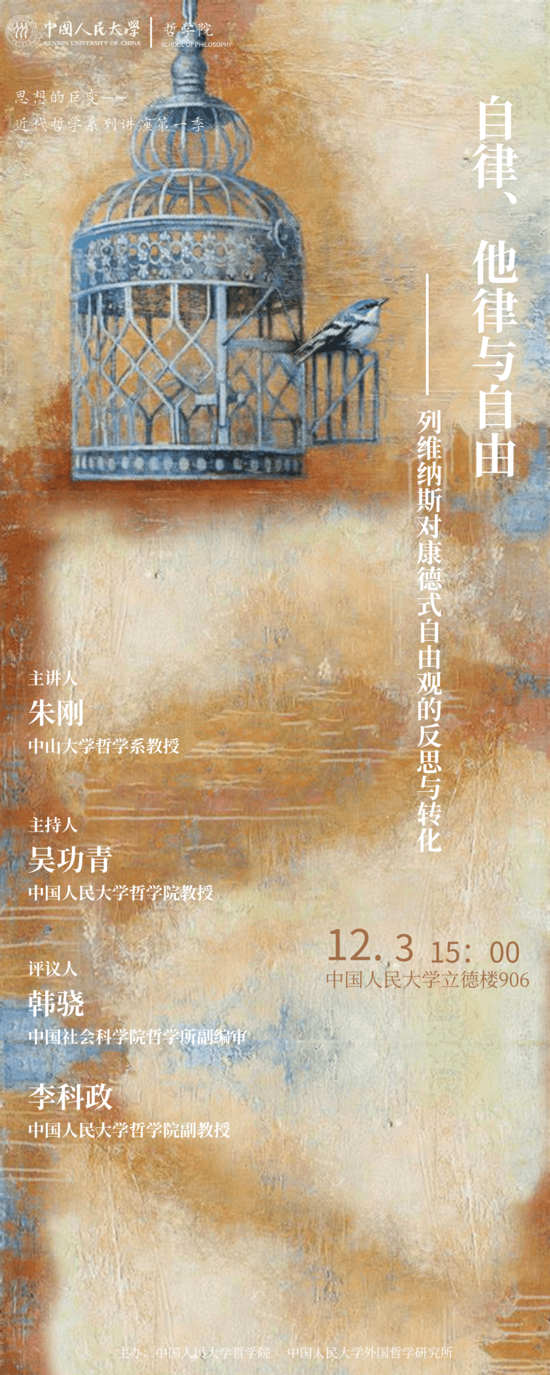 预告| 近代哲学系列讲座(七)丨朱刚:自律、他律与自由——列维纳斯对康德式自由观的反思与转化
