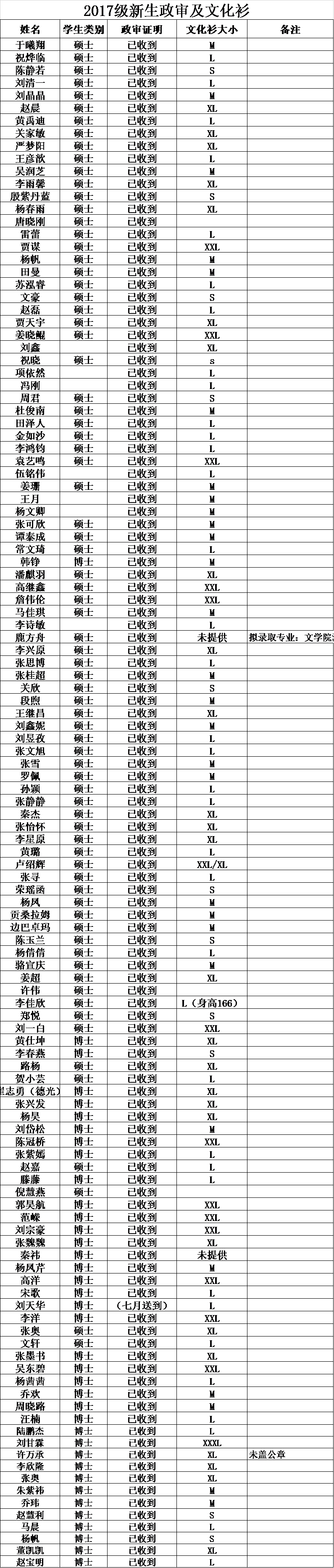 20170613 | 2017级政审及文化衫统计情况更新