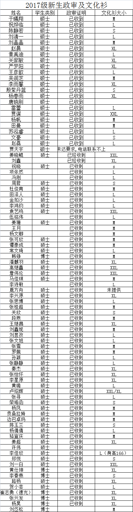 春水堂 2017级拟录取新生政审证明及文化衫尺寸统计情况(第二批)